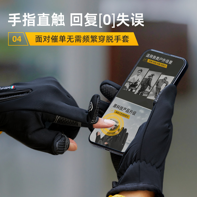 成人儿童手套秋冬季 半指翻盖男学生写字女毛线可爱加厚加绒新骑车