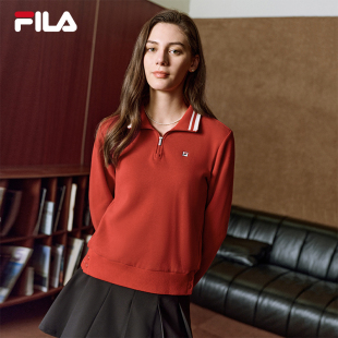 FILA斐乐官方女子套头卫衣2026春新款 上衣 红色半开襟舒适针织长袖