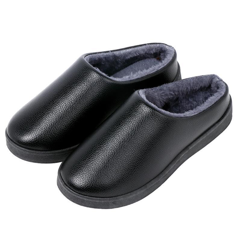 加绒加厚防水防滑中老年轻便舒适爸爸皮棉拖鞋 包头鞋 男冬季 半拖鞋