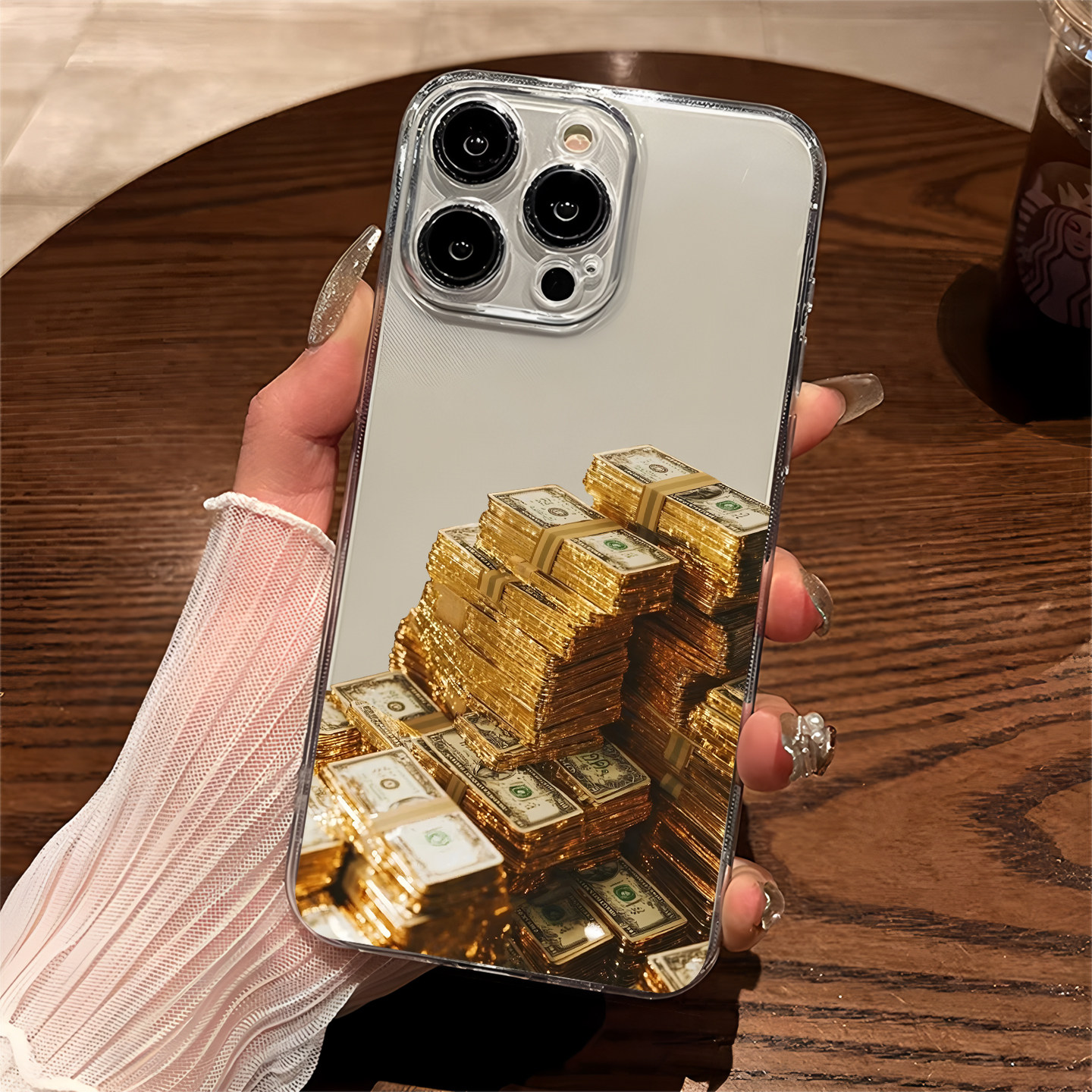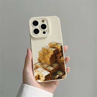 高能量一堆美金适用iPhone17pro镜面16promax美元 8plus创意12招财 15Pro苹果14手机壳xsmax补妆13简约xr情侣7