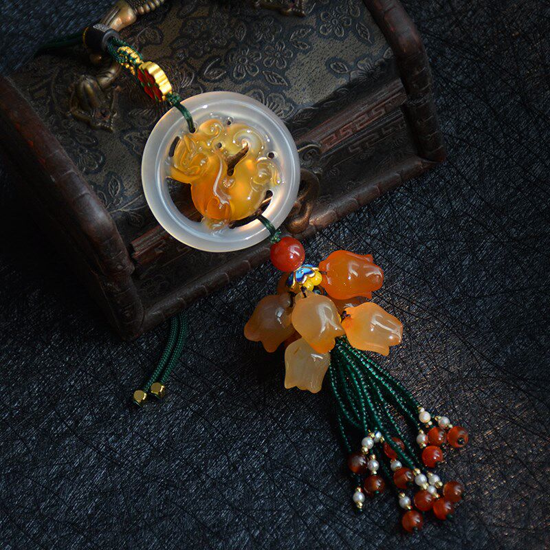 麒麟车内吊饰玉石挂饰品男女短款 挡显示屏
