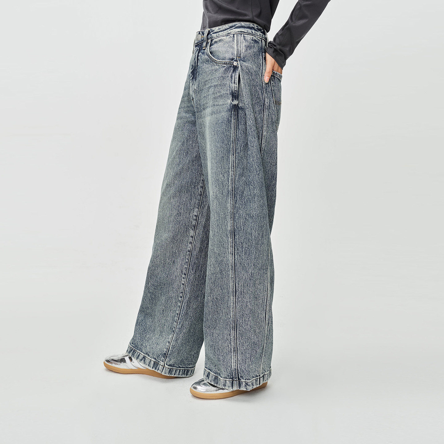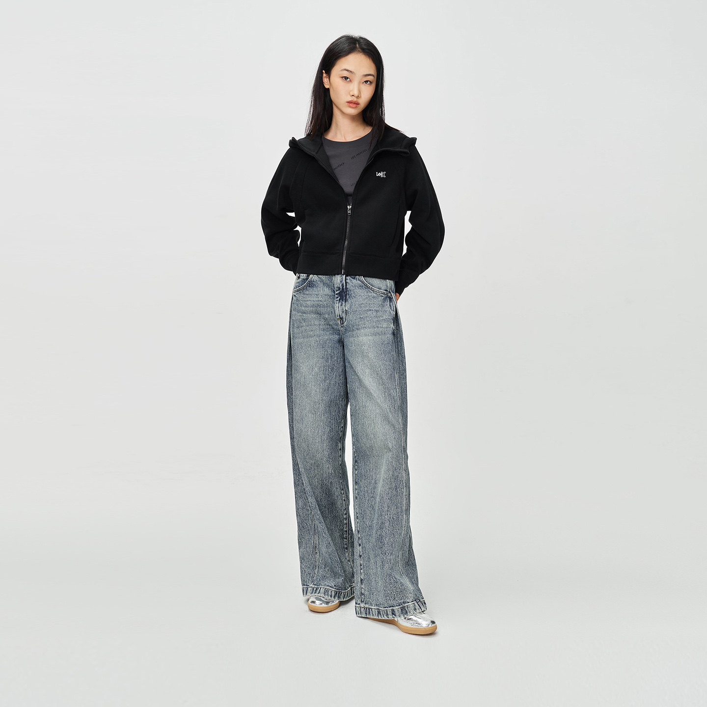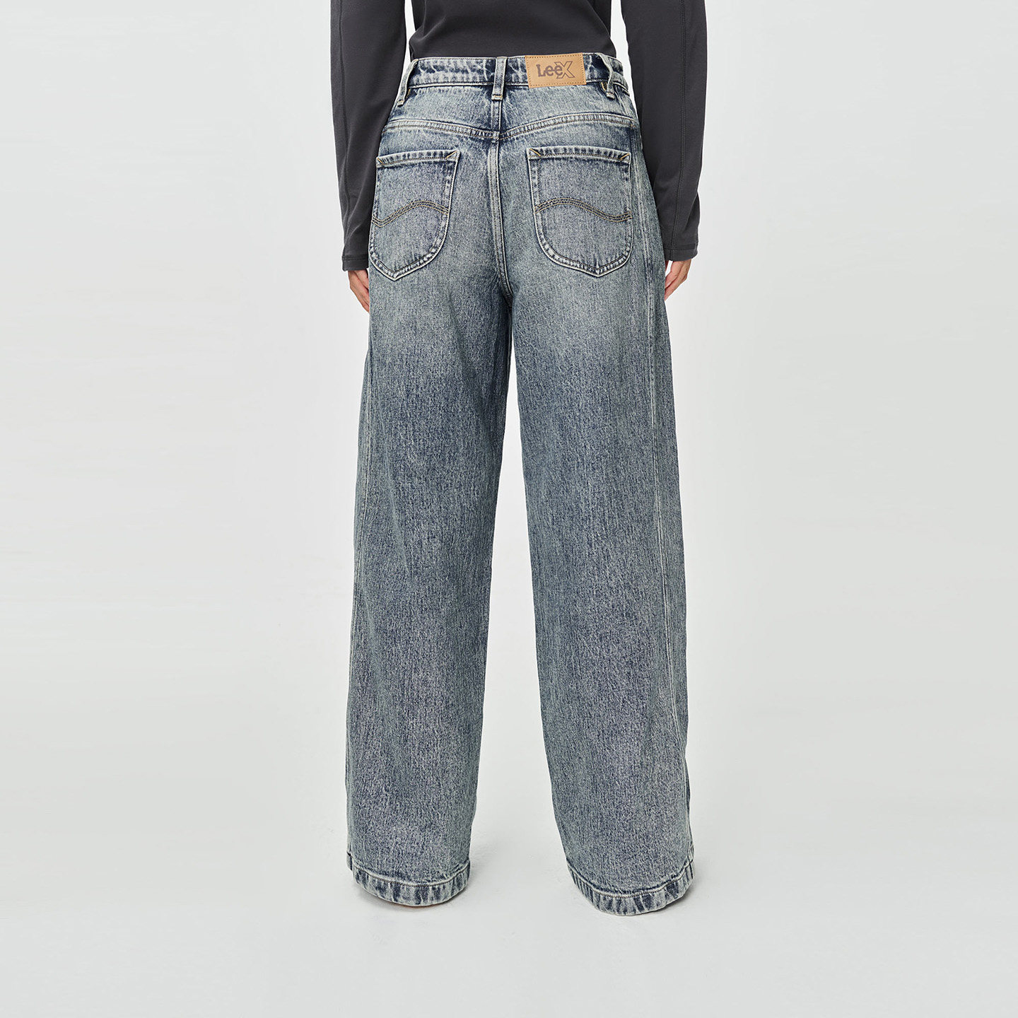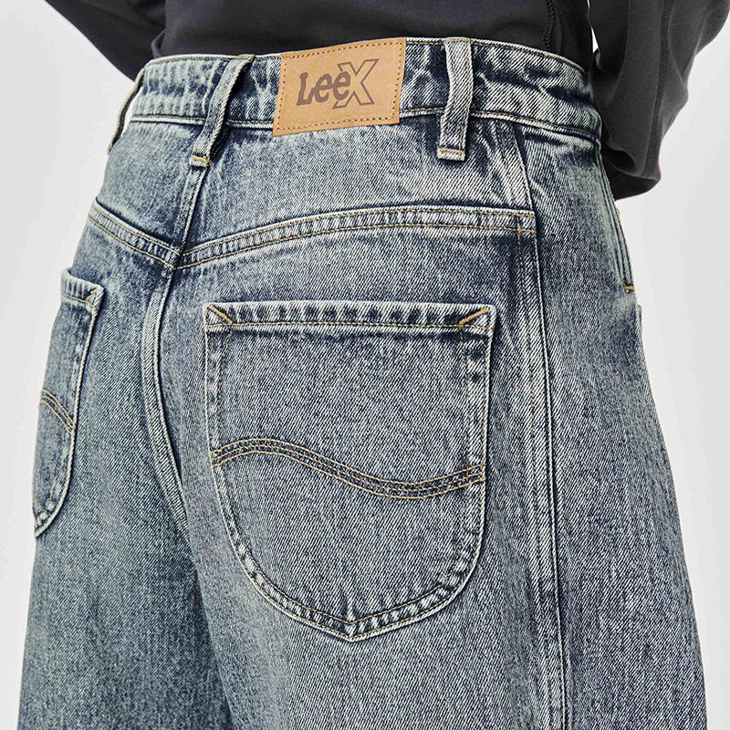 宽松五袋款 Lee25秋冬新品 复古中蓝色女阔腿牛仔裤 张凌赫代言