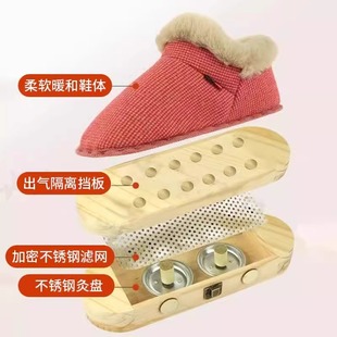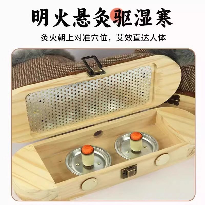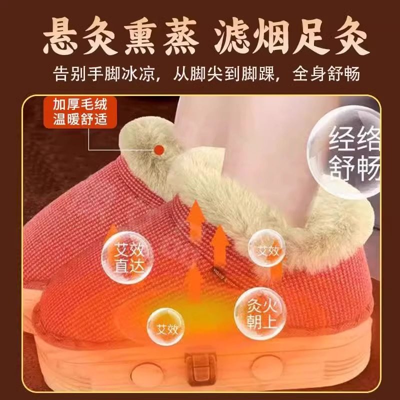 足底艾灸鞋 暖足懒人实木足灸箱 子实木艾灸盒随身灸热敷脚部棉拖鞋