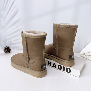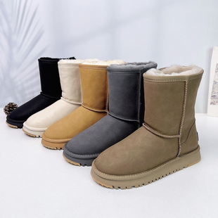 全羊毛雪地靴女中筒2025冬新款 皮毛一体防水防滑东北加绒保暖棉鞋
