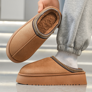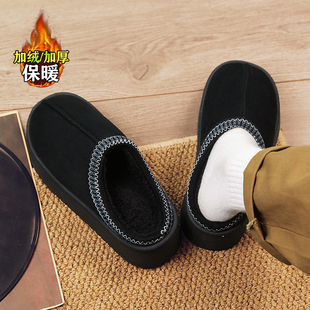 居家室内保暖外穿加绒加厚无后跟半拖休闲棉鞋 冬季 男款 包头棉拖鞋