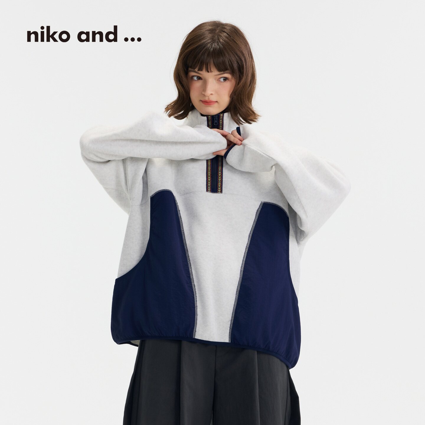 博主同款 新款 niko ...卫衣女25冬季 拼接松弛感上衣591840 and