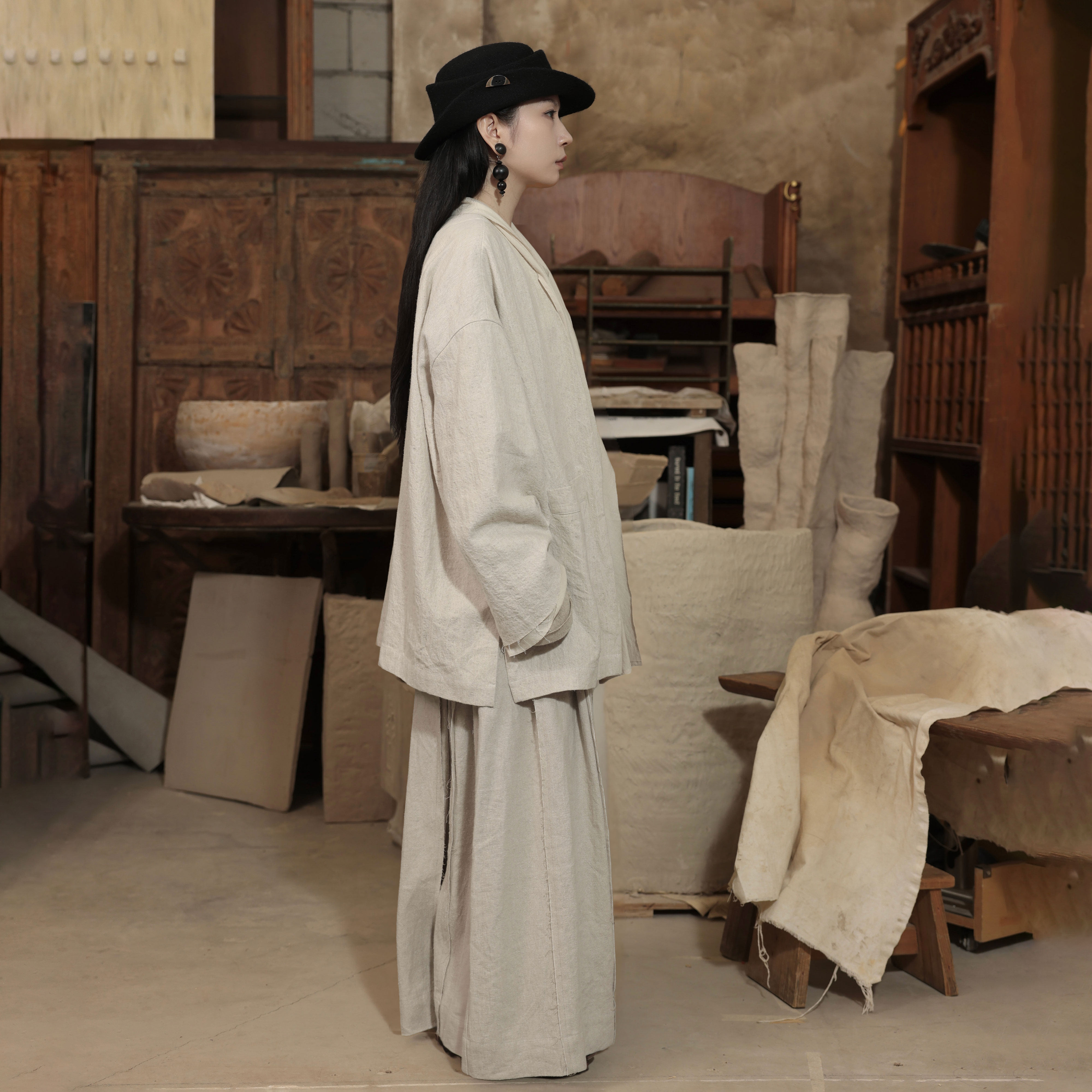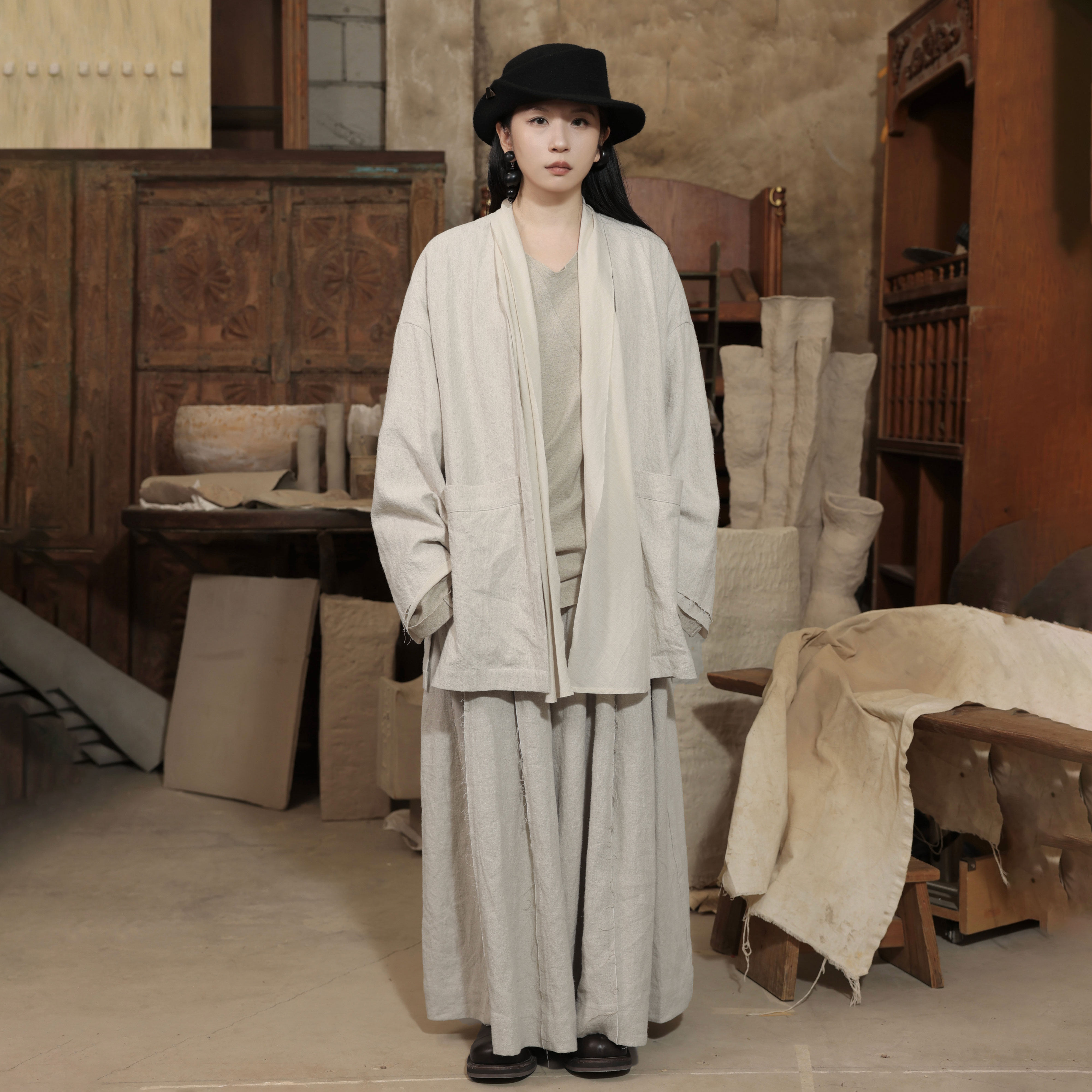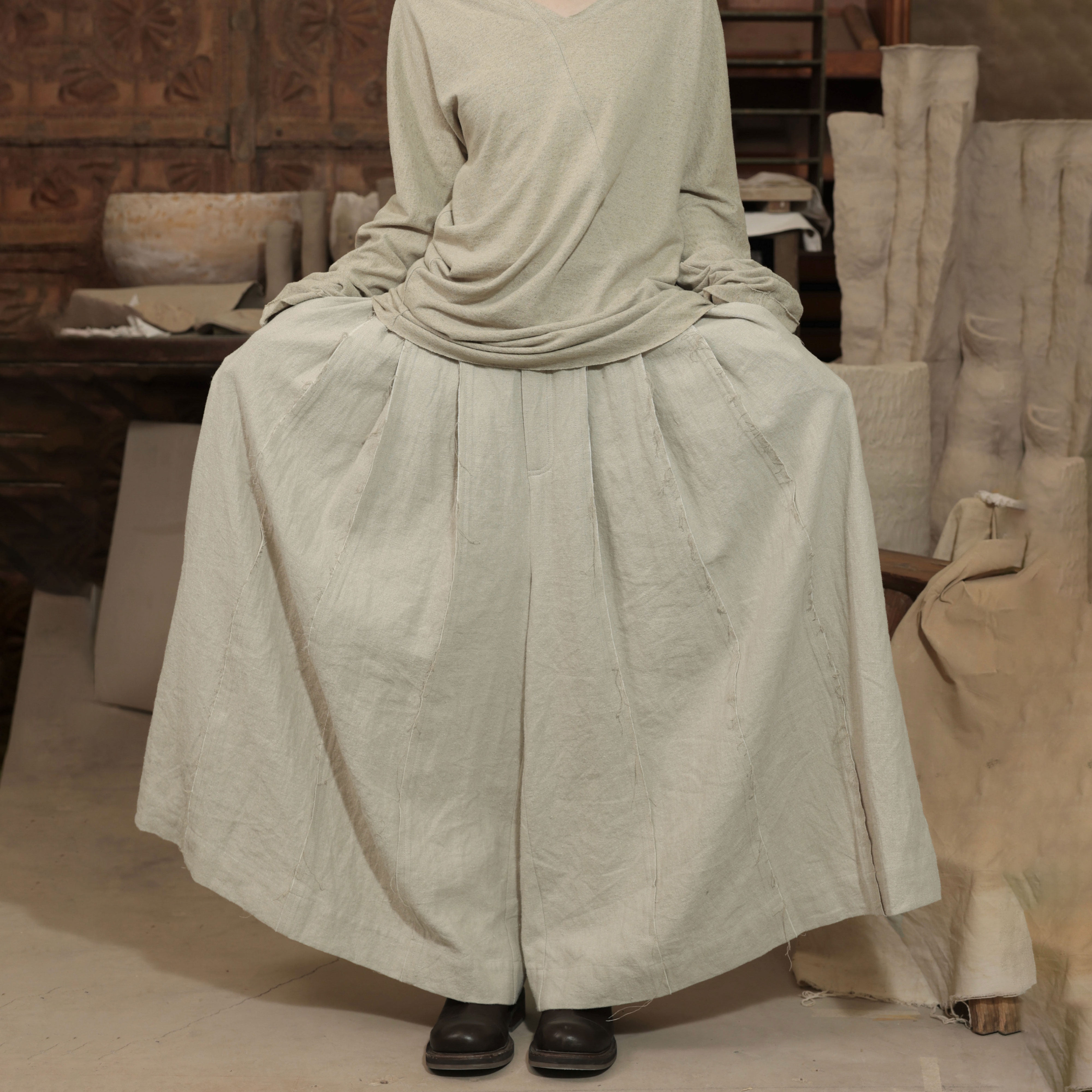 腿 宽松休闲裤 毛边拼接阔腿裤 工匠感裙裤 InchLim 皱褶长裤 超大裤