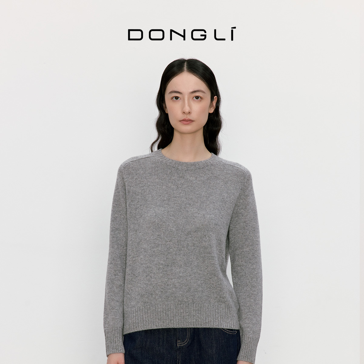 高级感上衣宽松打底针织衫 圆领100%纯山羊绒衫 女高端毛衣秋冬新款