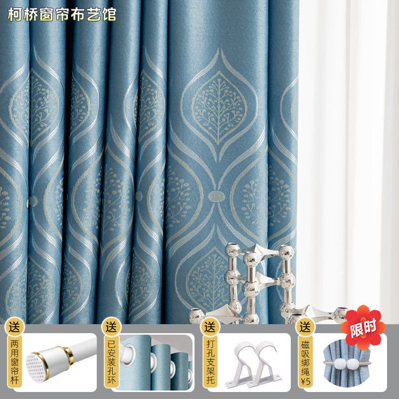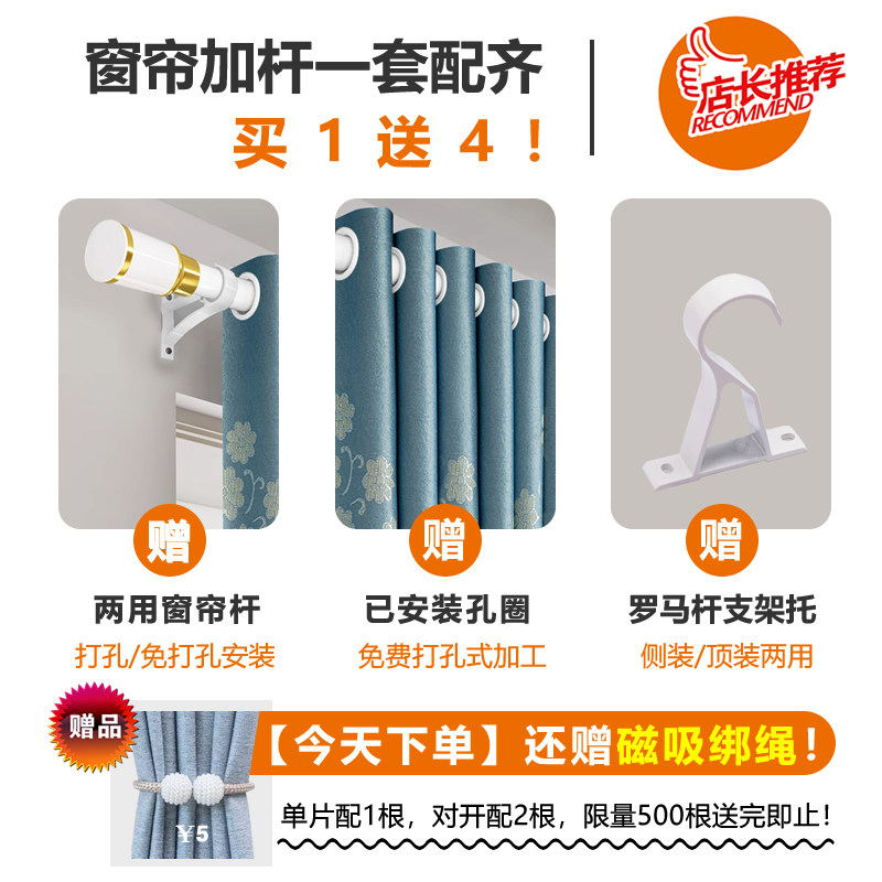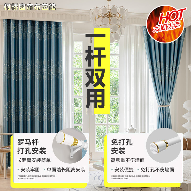 窗帘全套送伸缩杆罗马杆遮光隔热卧室客厅定制成品新款 免打孔安装