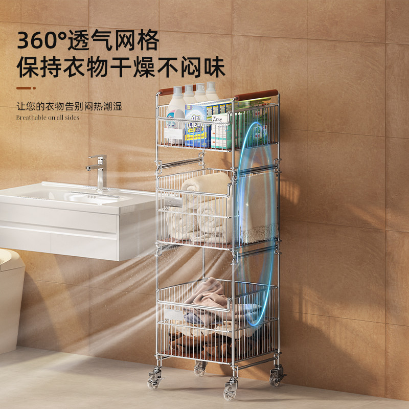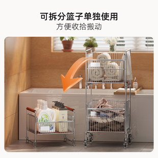 家用厕所置物架子落地脏衣篓脏衣篮浴室多层小推车移动衣服收纳筐