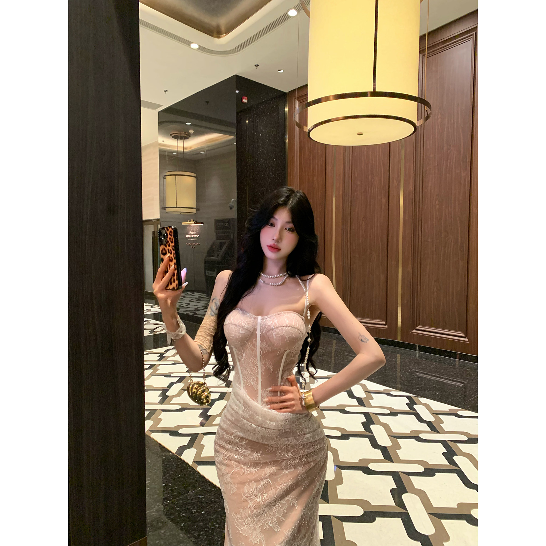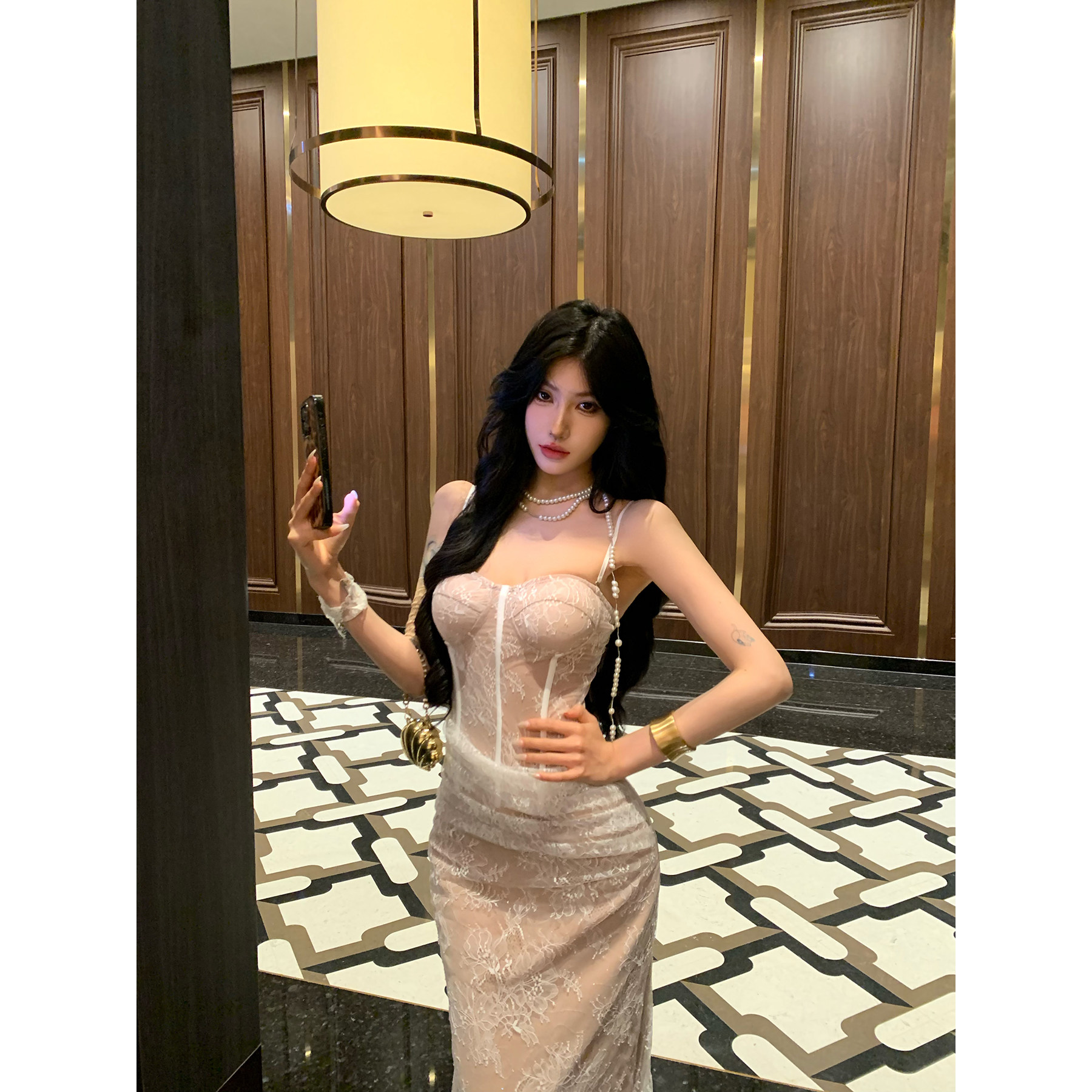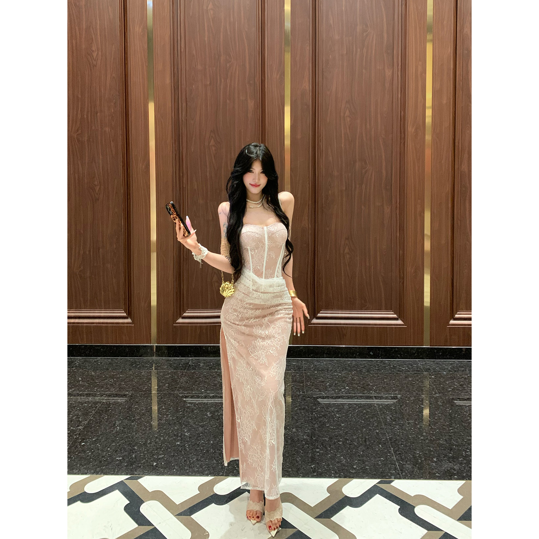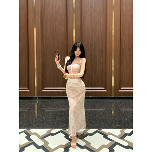 包臀裙长裙开叉裙子 法式 牛了牛了 蕾丝抹胸连衣裙女2025秋冬新款