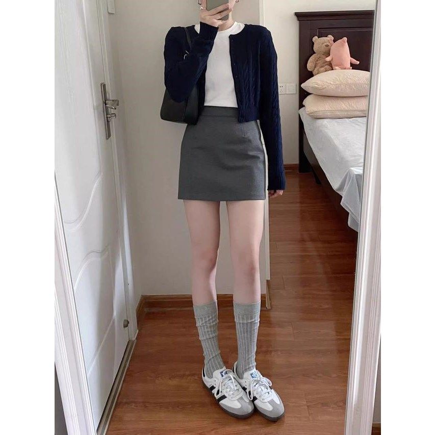 百搭a字裙遮胯包臀高腰短裙子1 2025新款 灰色西装 显瘦半身裙女春季