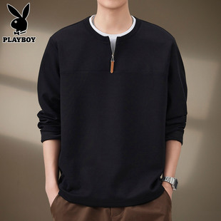 圆领条纹套头印花春秋打底衫 新款 卫衣运动休闲男秋季 男士