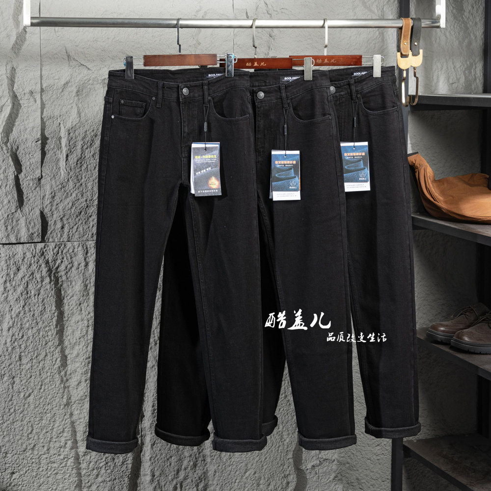 棉质水洗弹力透气德绒保暖牛仔裤 秋冬男士 显瘦有型 精湛小黑牛