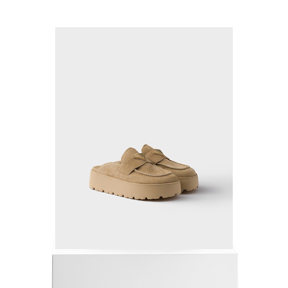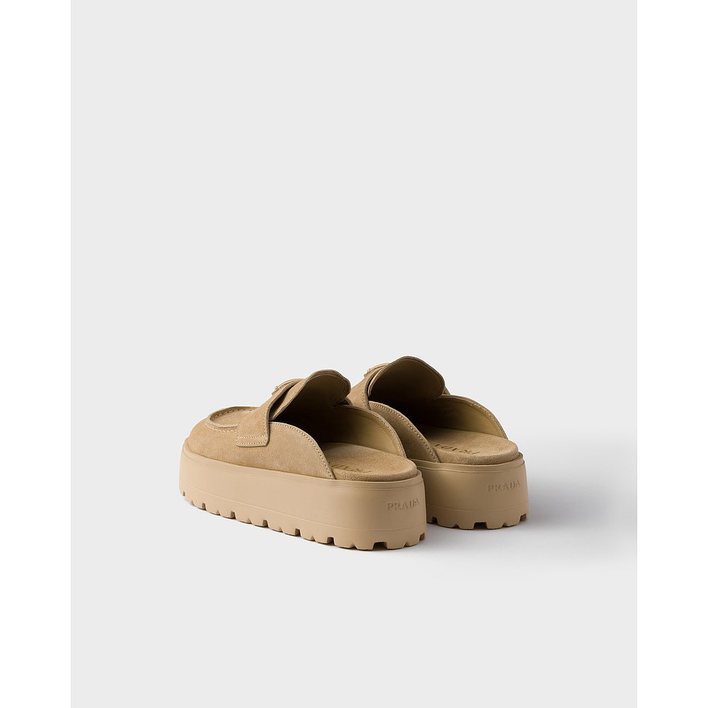 普拉达厚底 绒面小牛皮平底穆勒鞋 欧洲直邮PRADA 2025