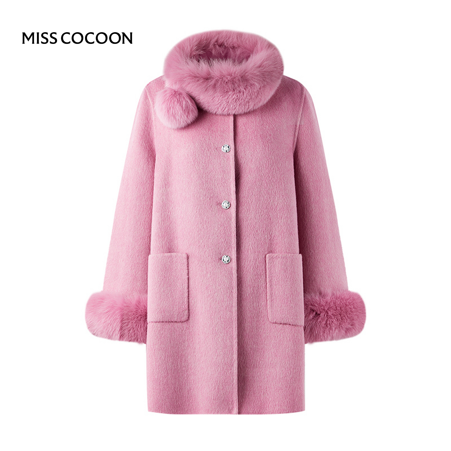 MISSCOCOON可可尼狐狸毛领呢子外套女2025秋冬新款 保暖绵羊毛大衣