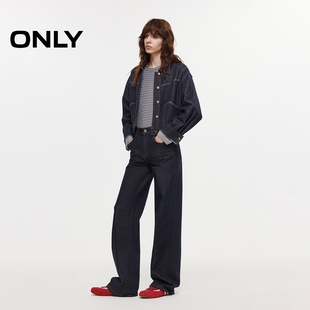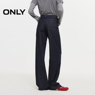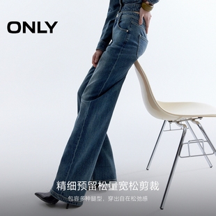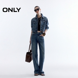 牛仔裤 ONLY2025冬季 口翻边直筒长裤 复古高腰显瘦磨白水洗裤 女 新款