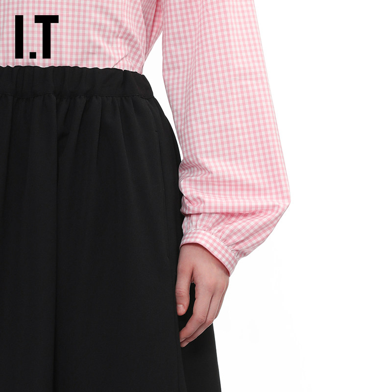 A字长裙棕色裙子 复古蕾丝休闲显瘦格子半身裙中长款 PSO Brand女装
