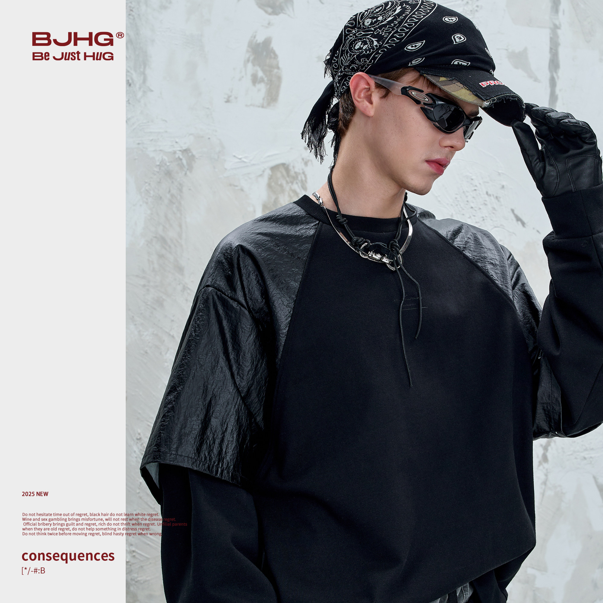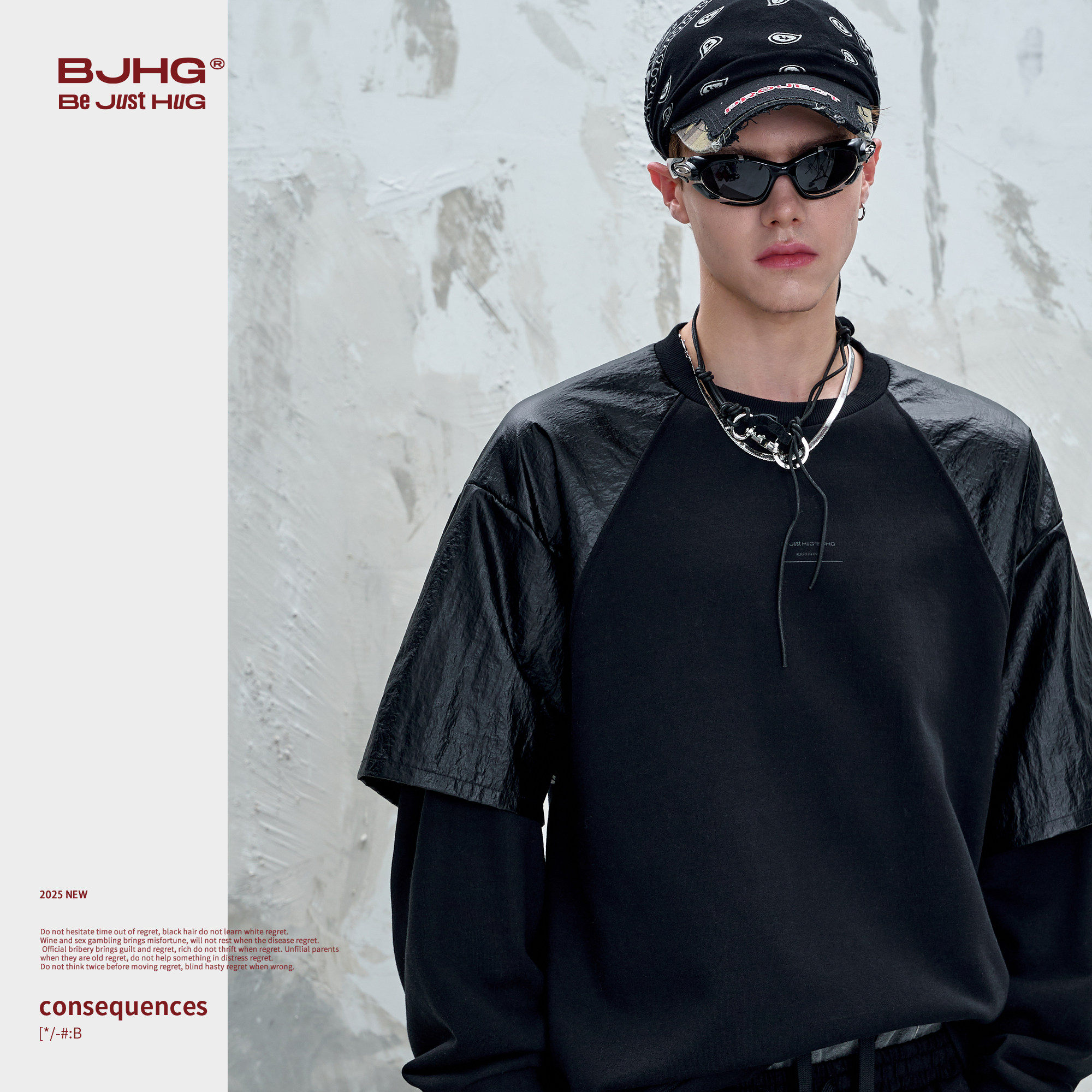 休闲运动暖皮情侣长袖 BJHG不计后果 冬季 卫衣男女款 T恤 假两件美式