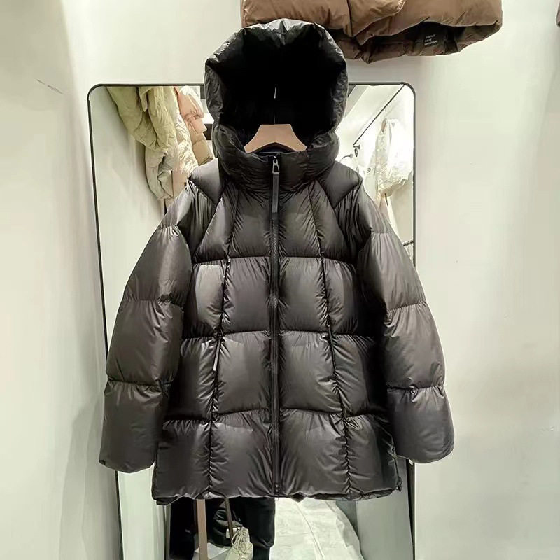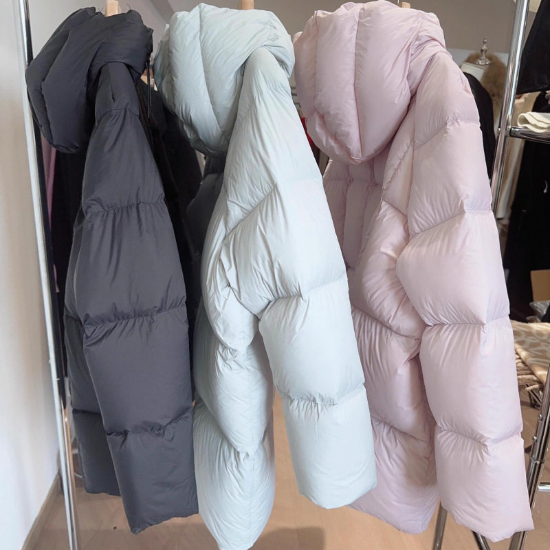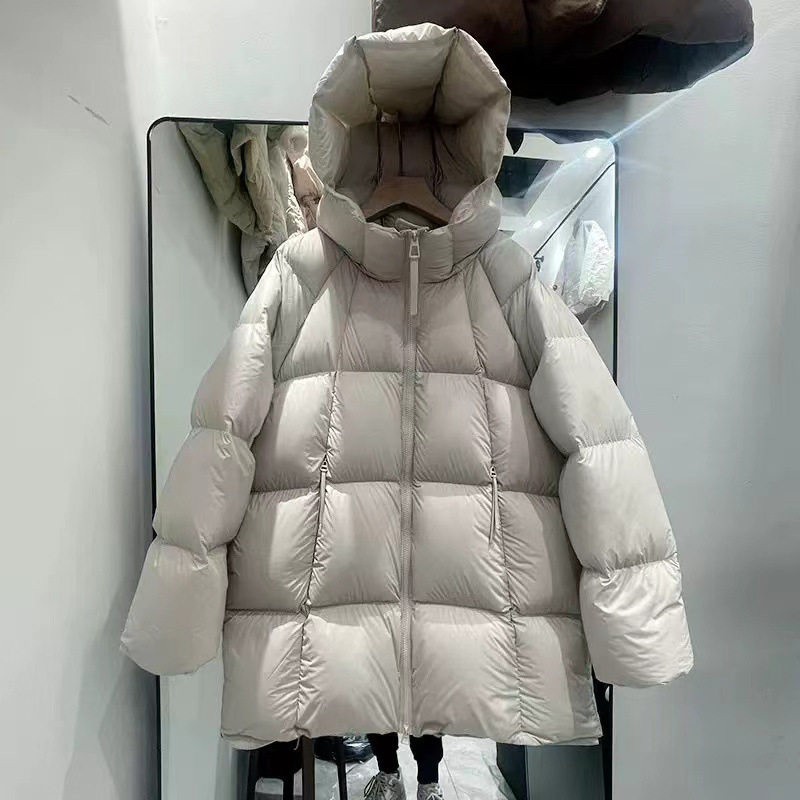 加厚白鸭绒 宽松连帽羽绒服女中长款 泡芙感轻柔2025冬季 新韩版