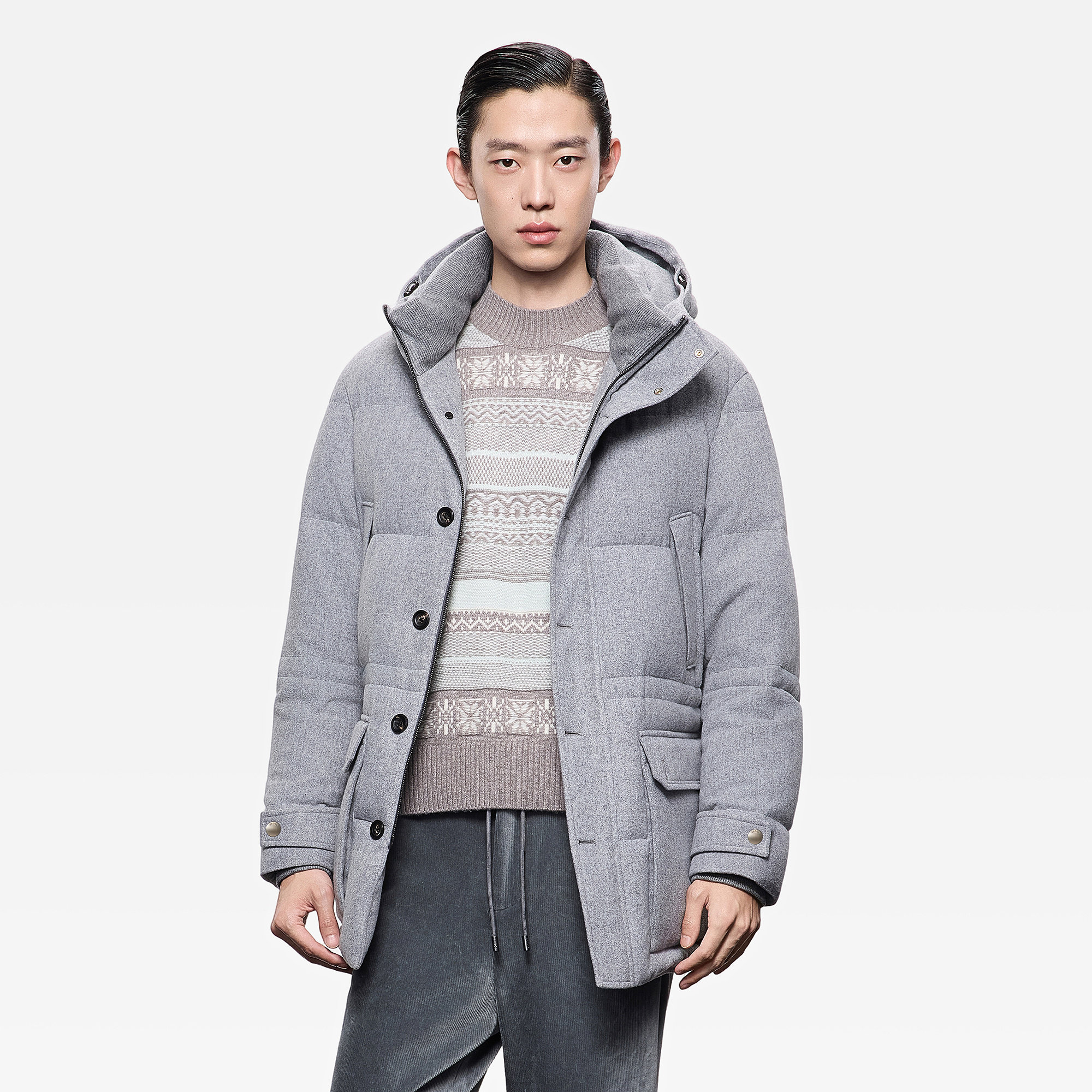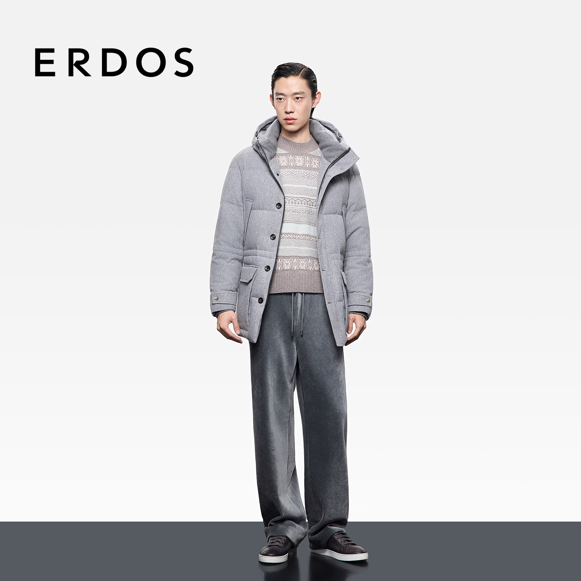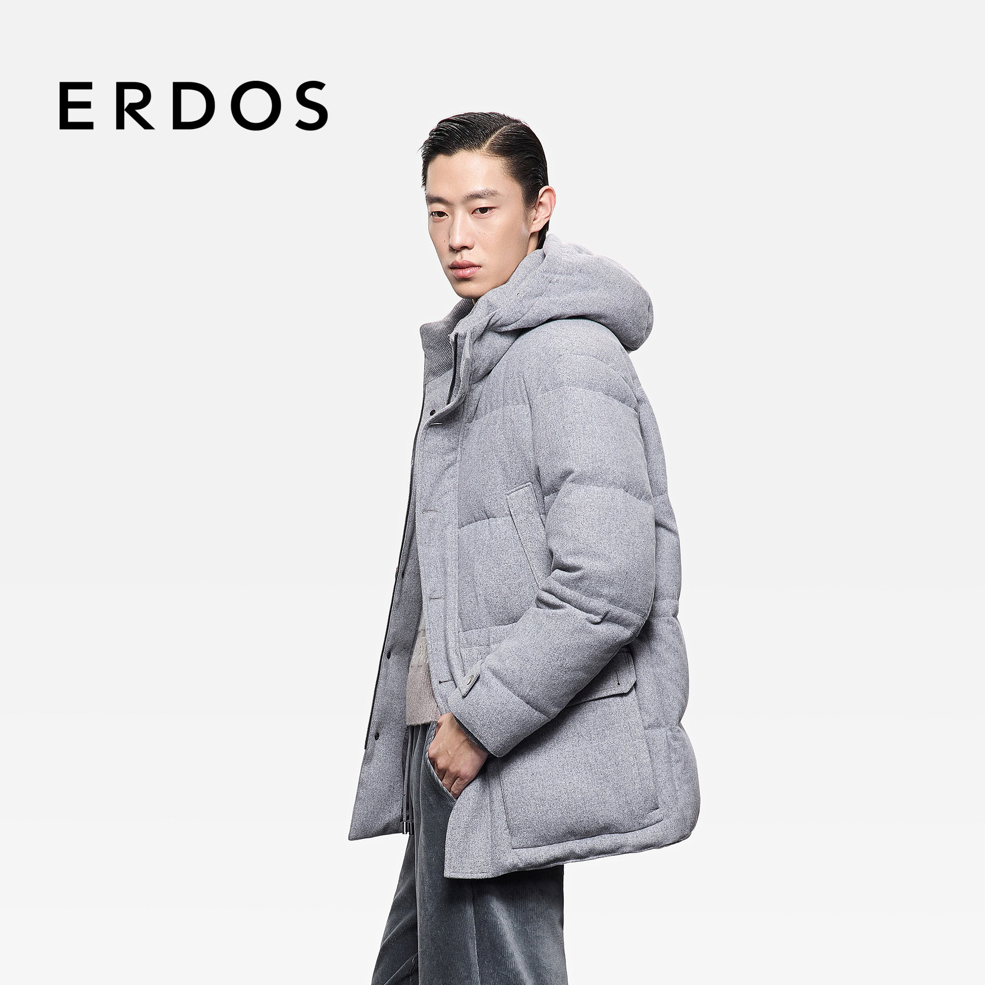 羊毛混纺羽绒服25年秋冬新品 男装 ERDOS 连帽保暖外套 90白鹅绒