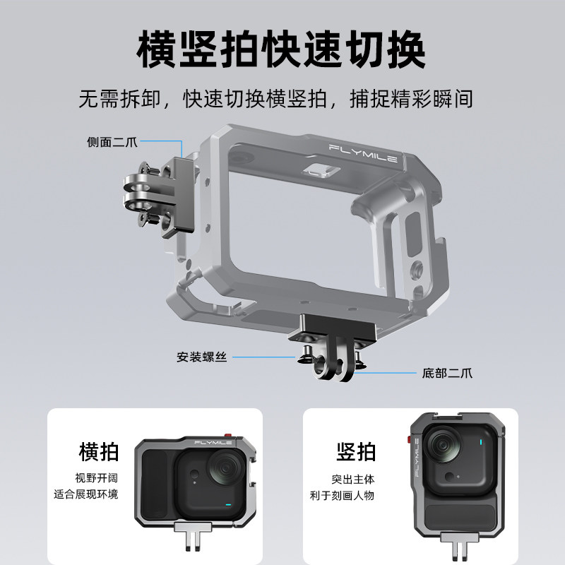 ultra运动相机多功能保护边框防磕碰保护壳配件 Ultra金属兔笼横竖拍拓展框go Flymile适用影石Insta360