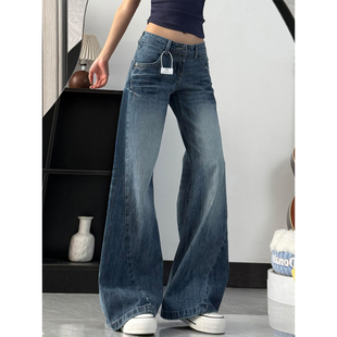 胖妹妹mm高腰遮胯显瘦直筒阔腿裤 女秋冬新款 不贴腿微喇牛仔裤 美式