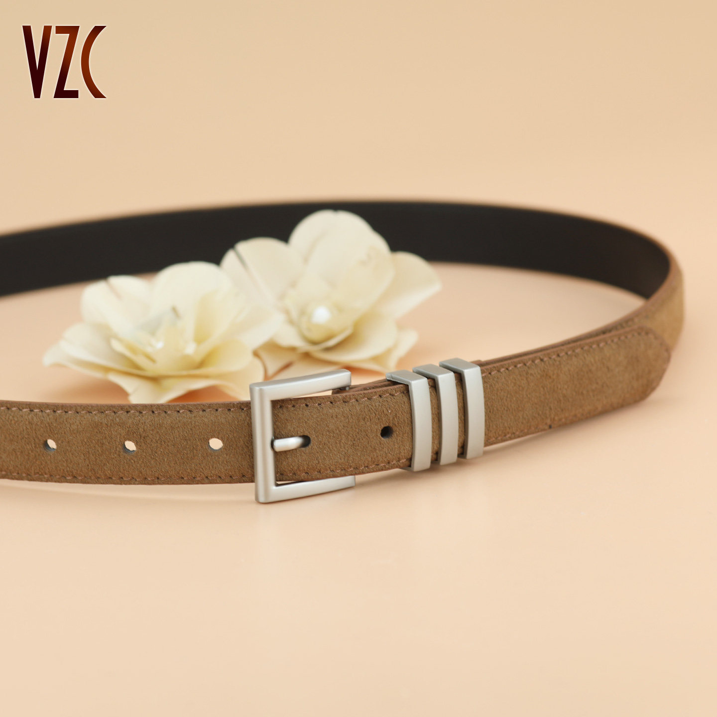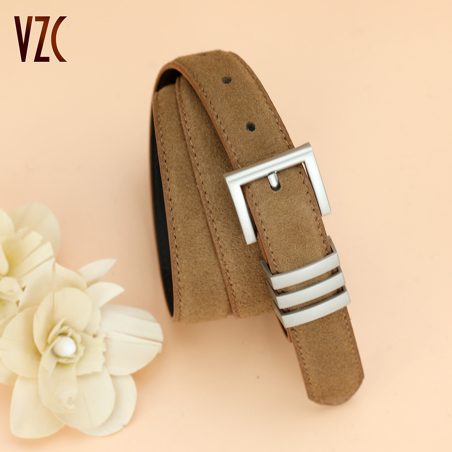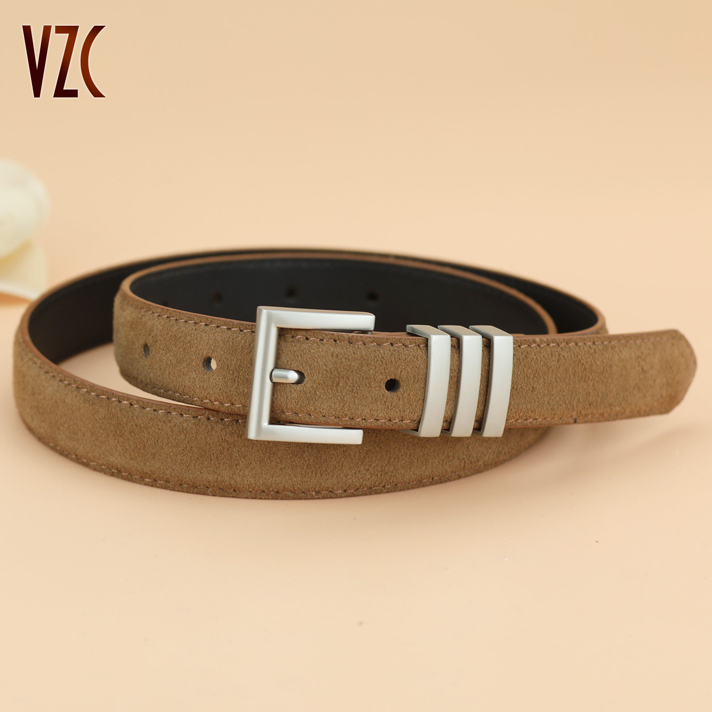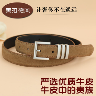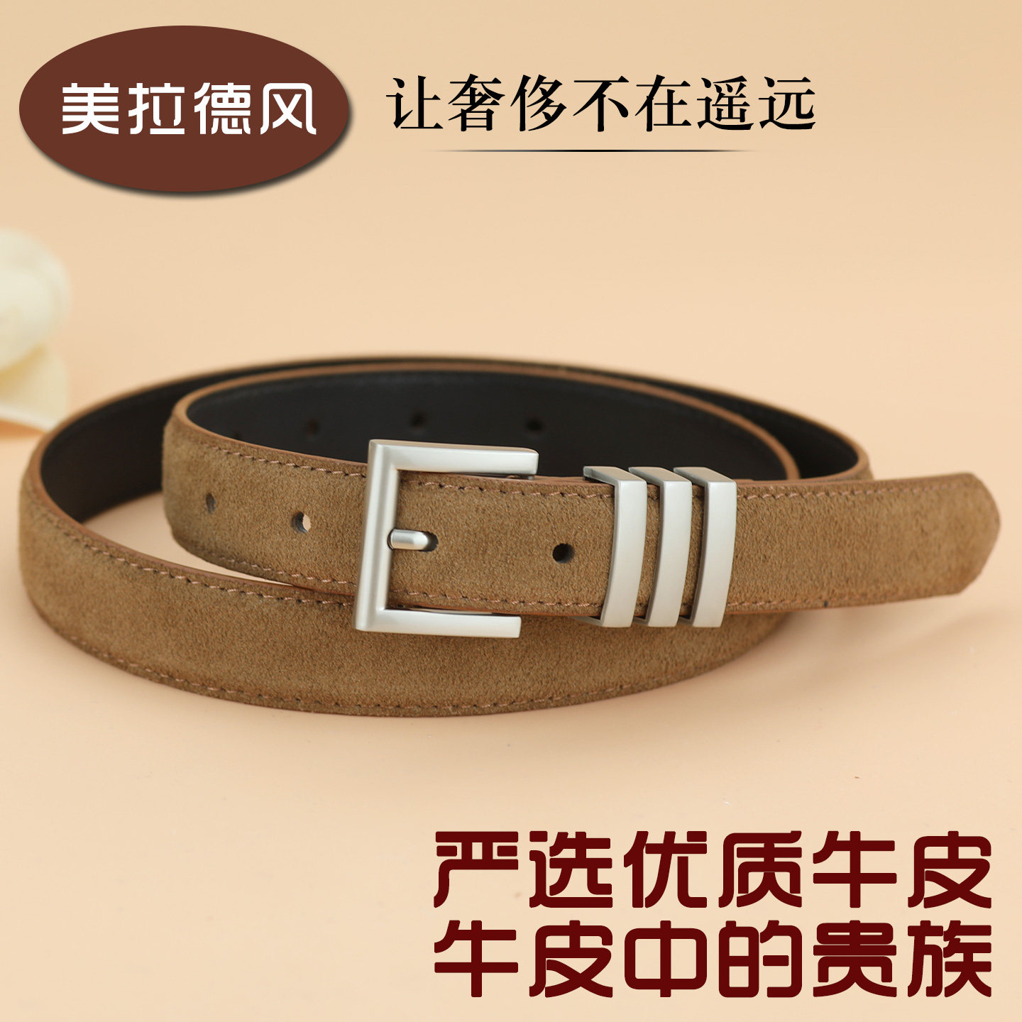 牛仔裤 饰配裙西装 带 百搭装 皮带女真皮牛皮复古棕色麂皮绒腰带时尚