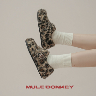 一脚蹬雪地靴毛绒豹纹棉鞋 多嘴驴Donkey加绒勃肯鞋 女冬保暖毛毛鞋