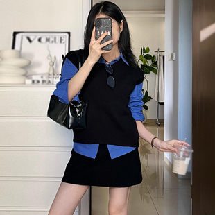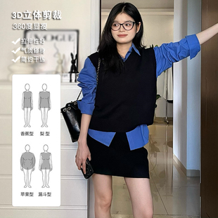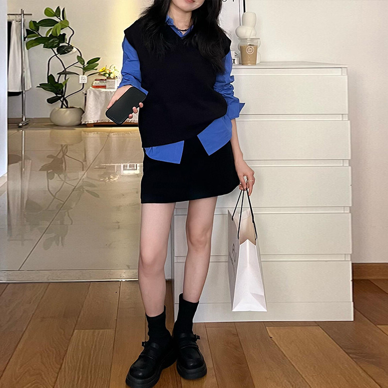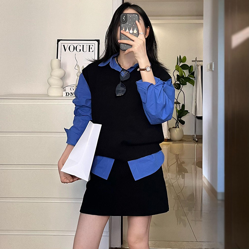 小个子盐系穿搭一整套女秋冬大码 三件套裙 学院风针织麻花马甲衬衫