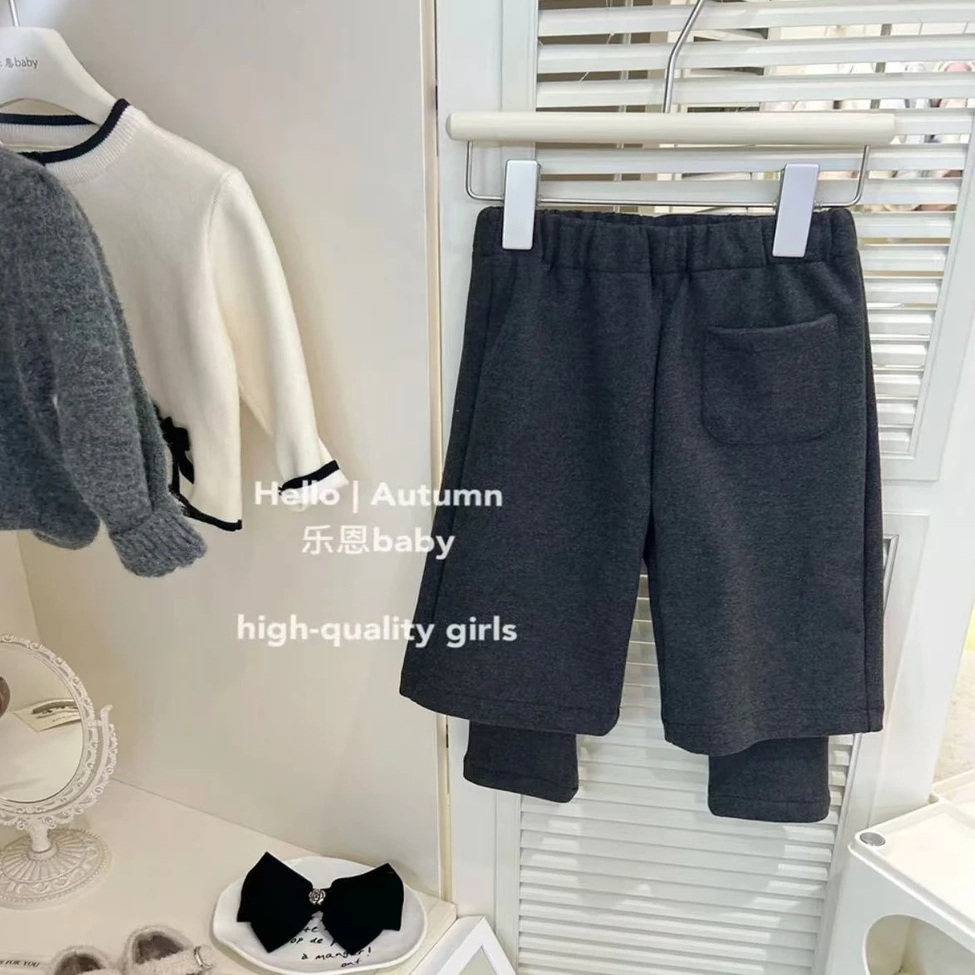 女宝宝时髦裤 韩版 新款 呢子加绒加厚冬季 子休闲 2025女童假两件长裤