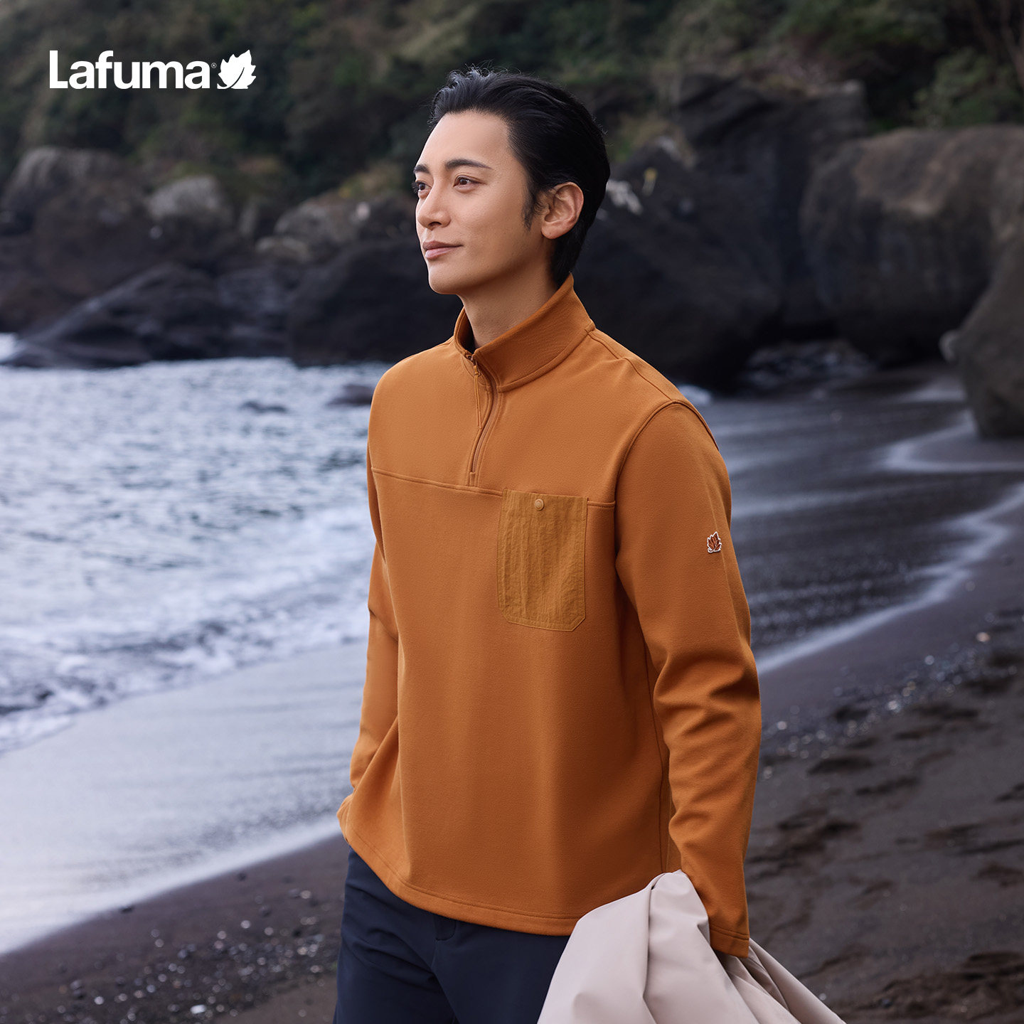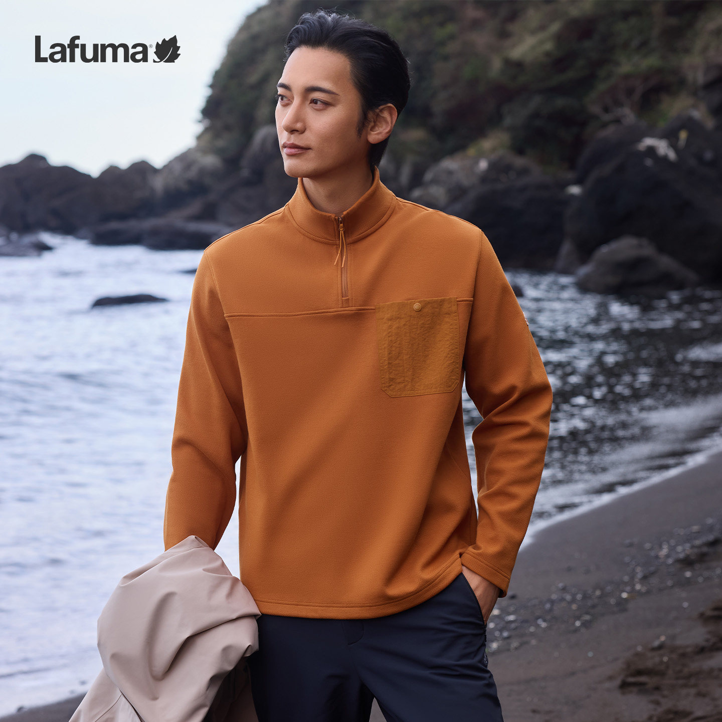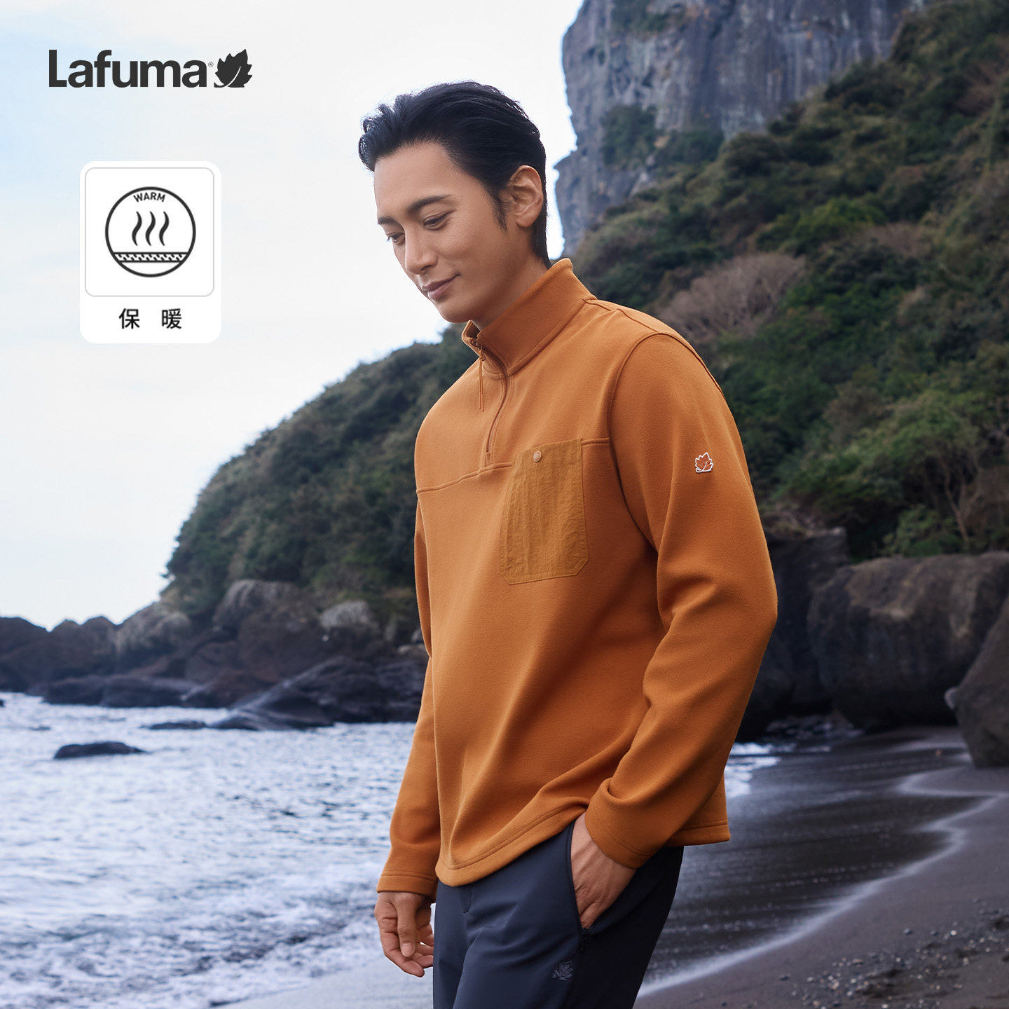 运动休闲打底衫 T恤男士 乐飞叶户外秋冬半拉链立领薄绒长袖 Lafuma