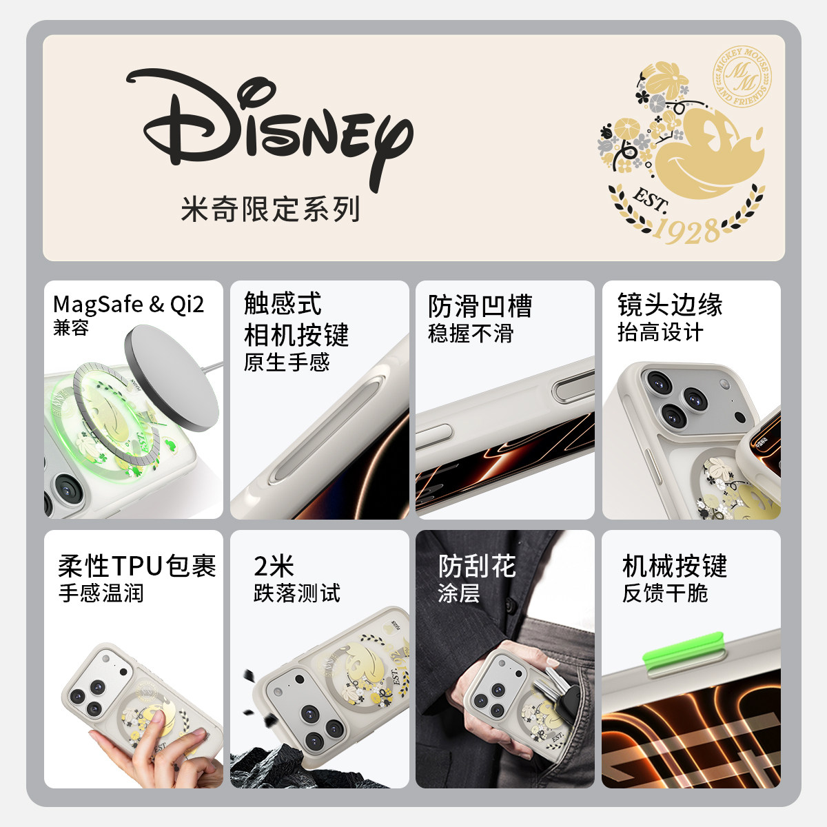 Belkin贝尔金迪士尼米奇适用苹果17Air磁吸手机壳iPhone17Pro官方正版 Qi2无线充外壳防摔耐刮 保护套MagSafe