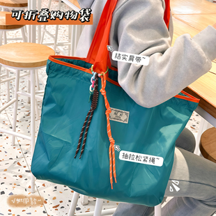 纯色折叠购物袋防水收纳袋便携超市买菜包大容量抽绳环保手提袋子