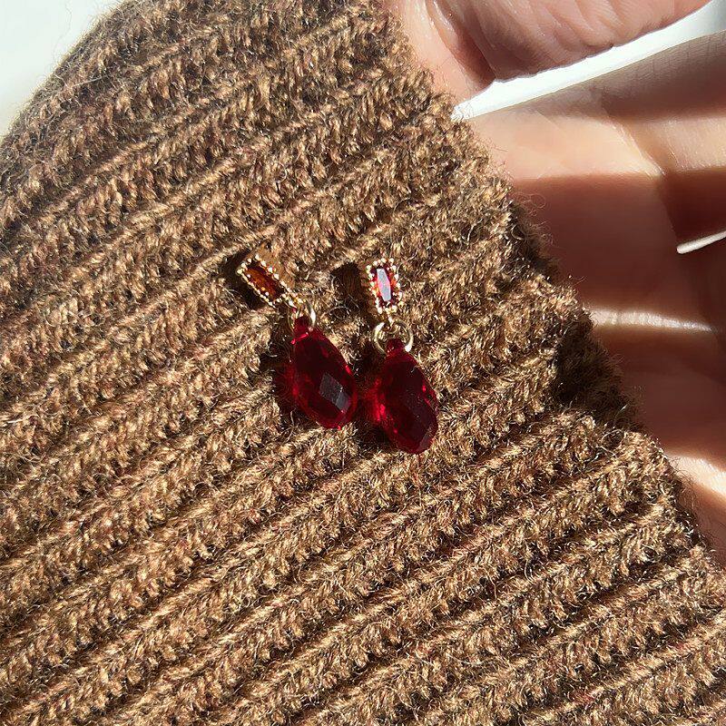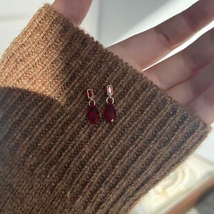 爆款 法式 复古红色水滴耳环小众设计百搭耳饰女气质显白2026新款