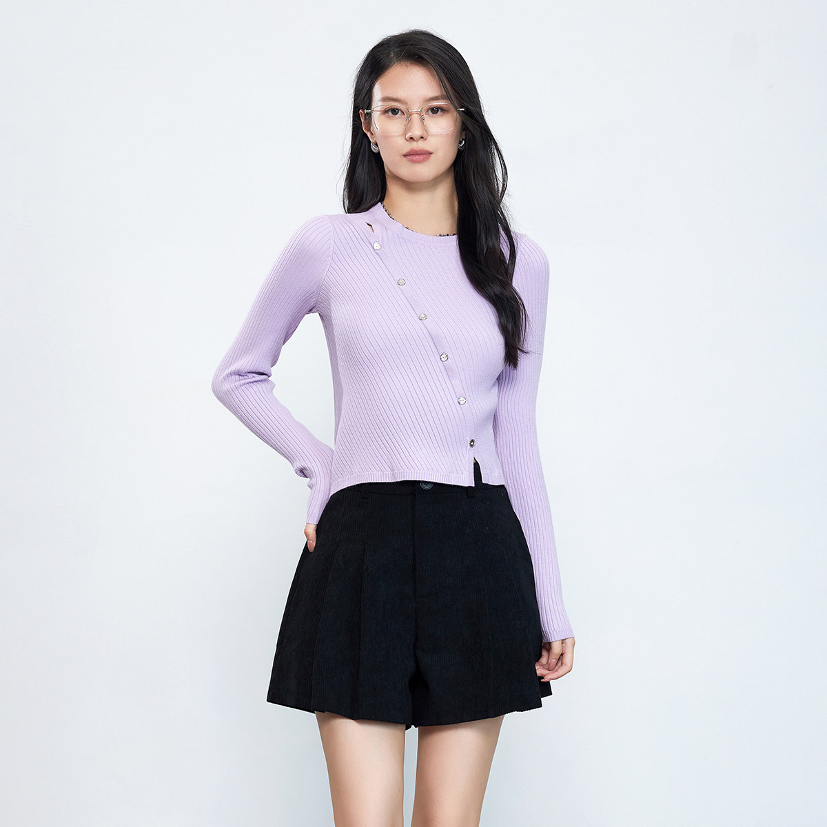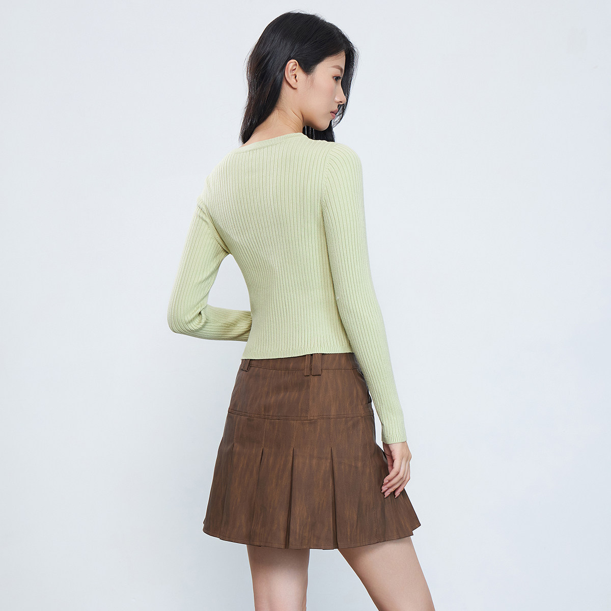 绿色气质上衣针织秋装 收腰修身 女长袖 SMEN诗萌高级感不对称针织衫