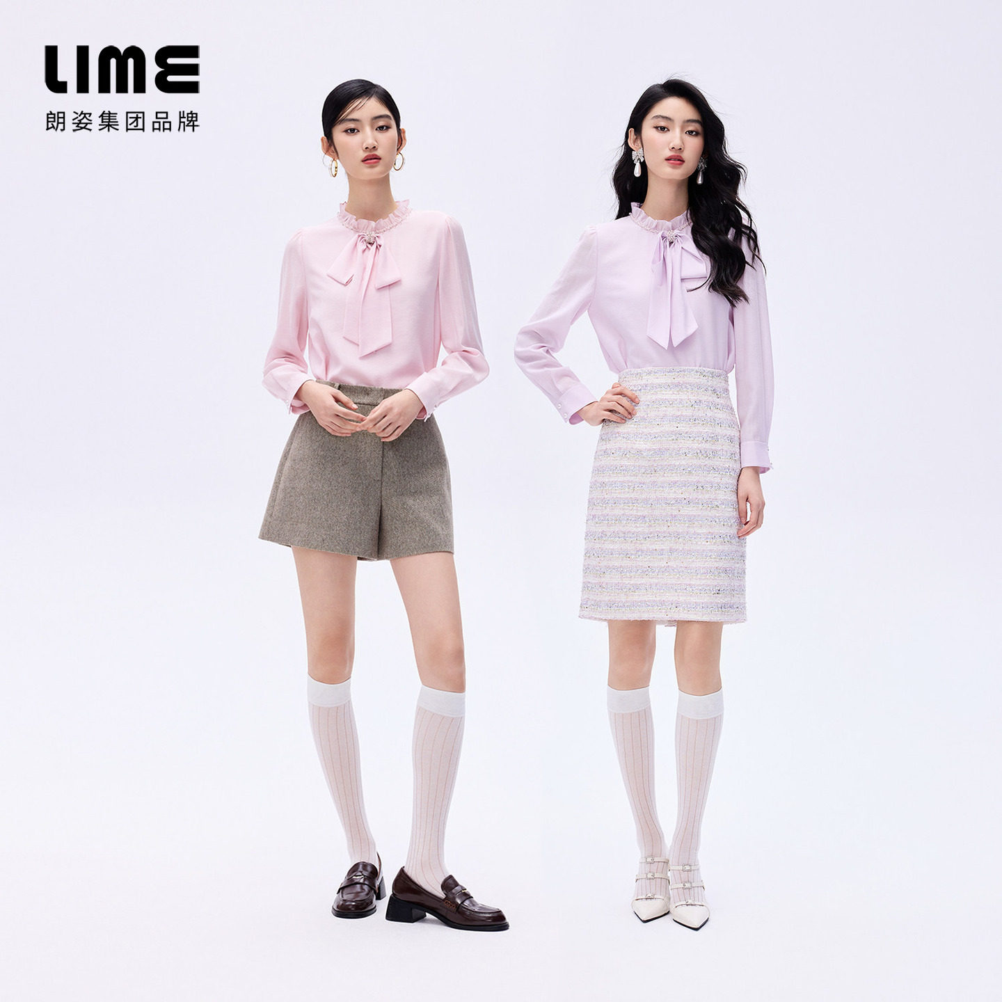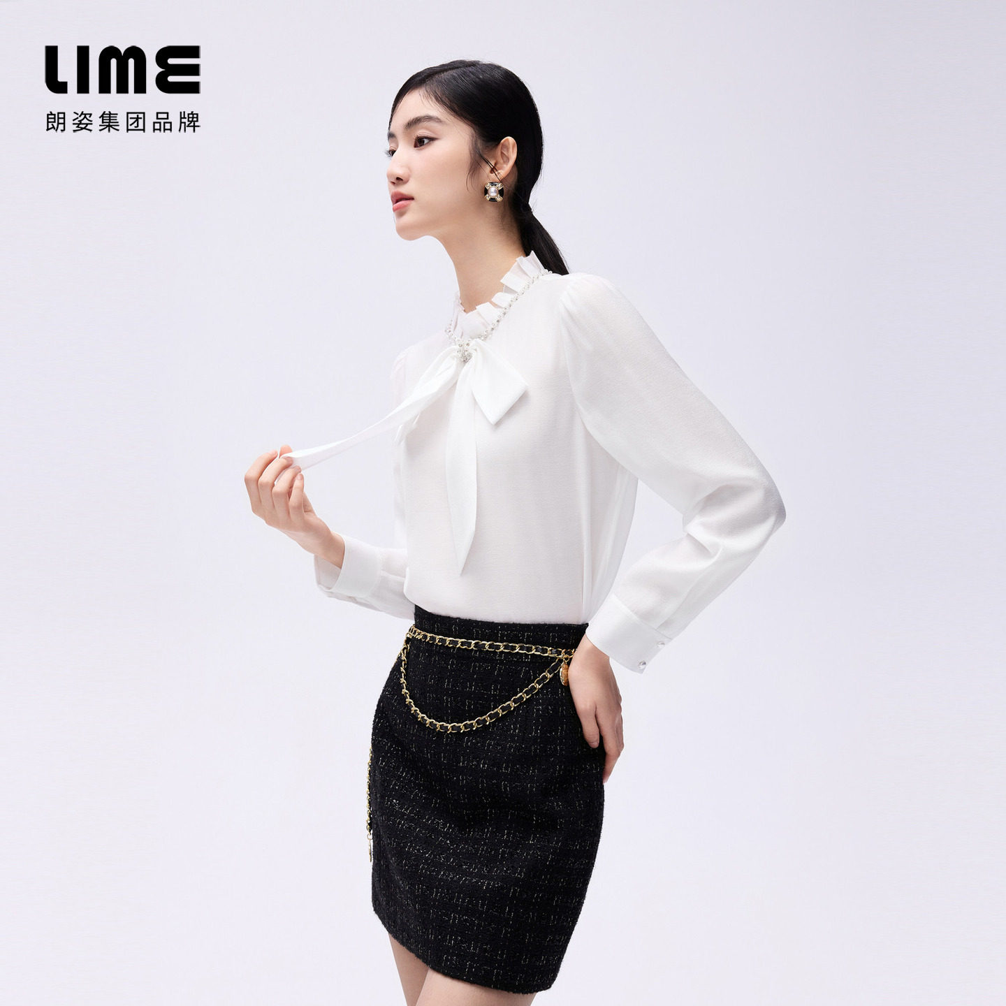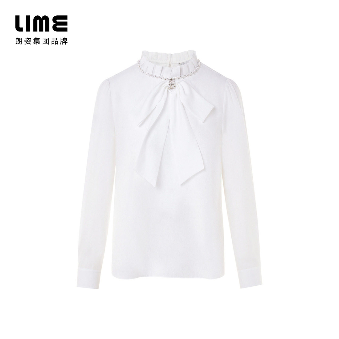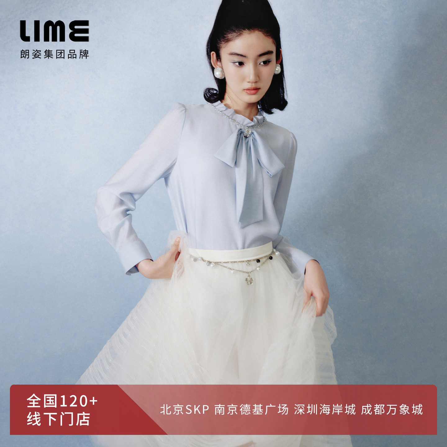 手工钉珠优雅26春新款 朗姿 LIME莱茵花边立领可拆卸蝴蝶结衬衫