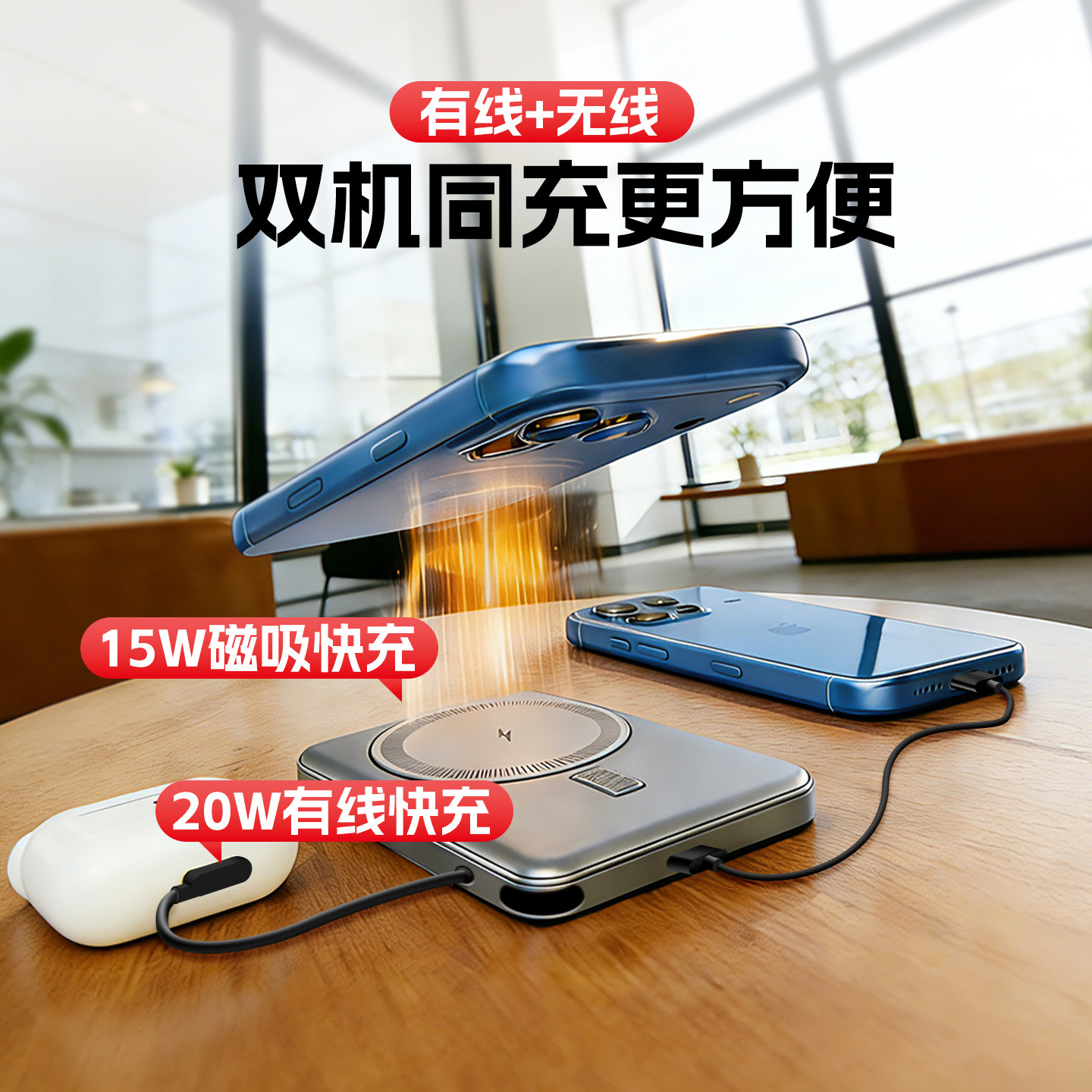 10000毫安时超薄小巧便携强磁性大功率超级无线快充大容量移动电源 iPower充电宝2026新款 3C认证可上飞机