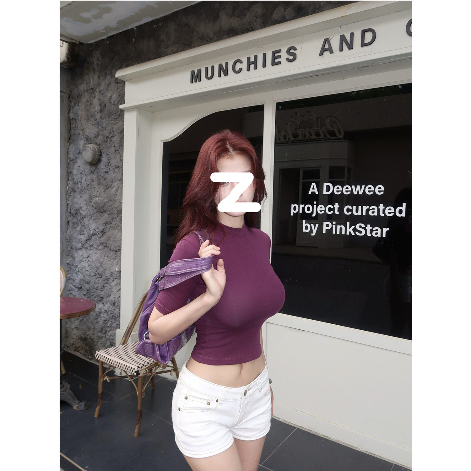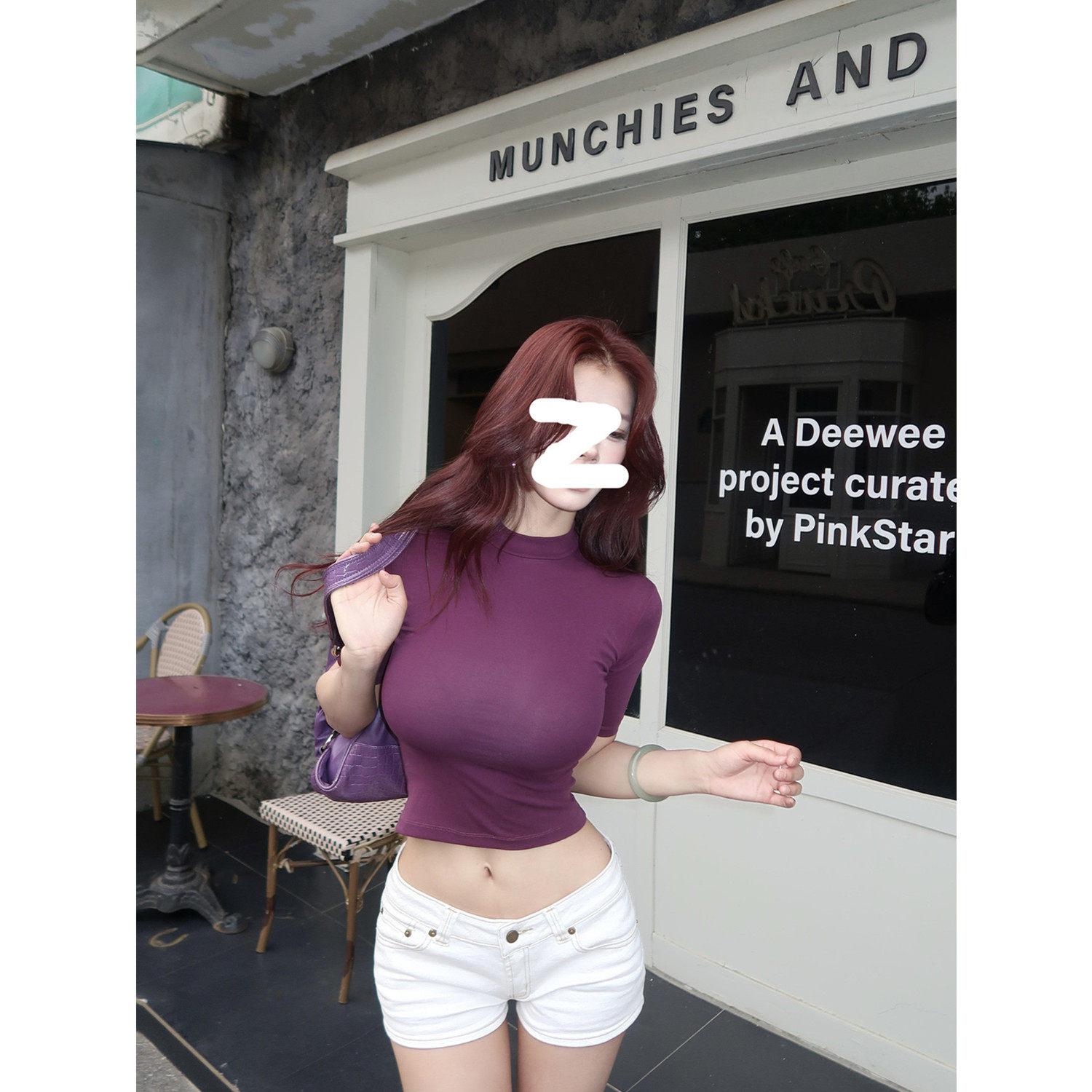 商品标签:紫色美式短款上衣