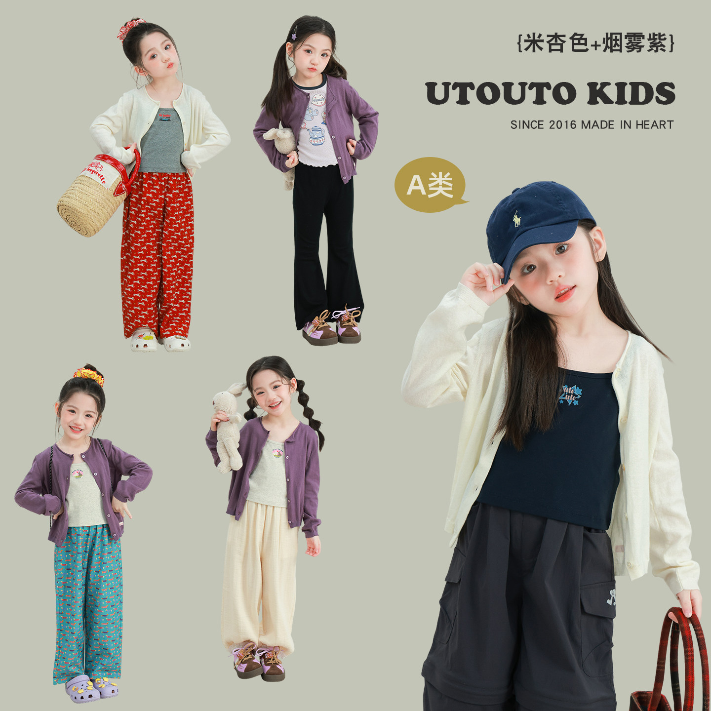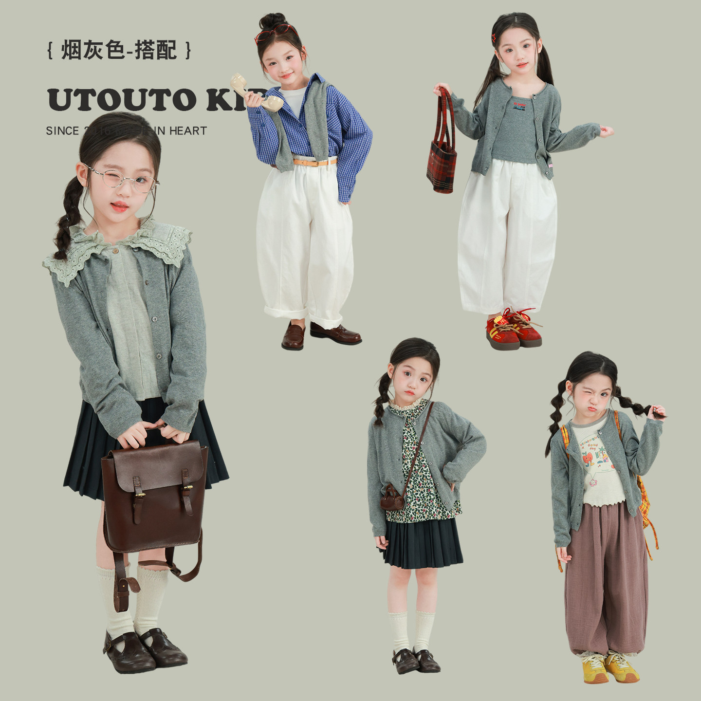 宝儿纯棉宽松圆领长袖 新款 外套 2026春季 大耳象女童小标毛衣开衫