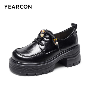 配裙子单鞋 意尔康女鞋 女士厚底英伦学院风小皮鞋 乐福鞋 2026春季