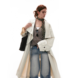 复古做旧大翻领长款 26SS法式 风衣宽松外套上衣女 MOMENT SINGLE