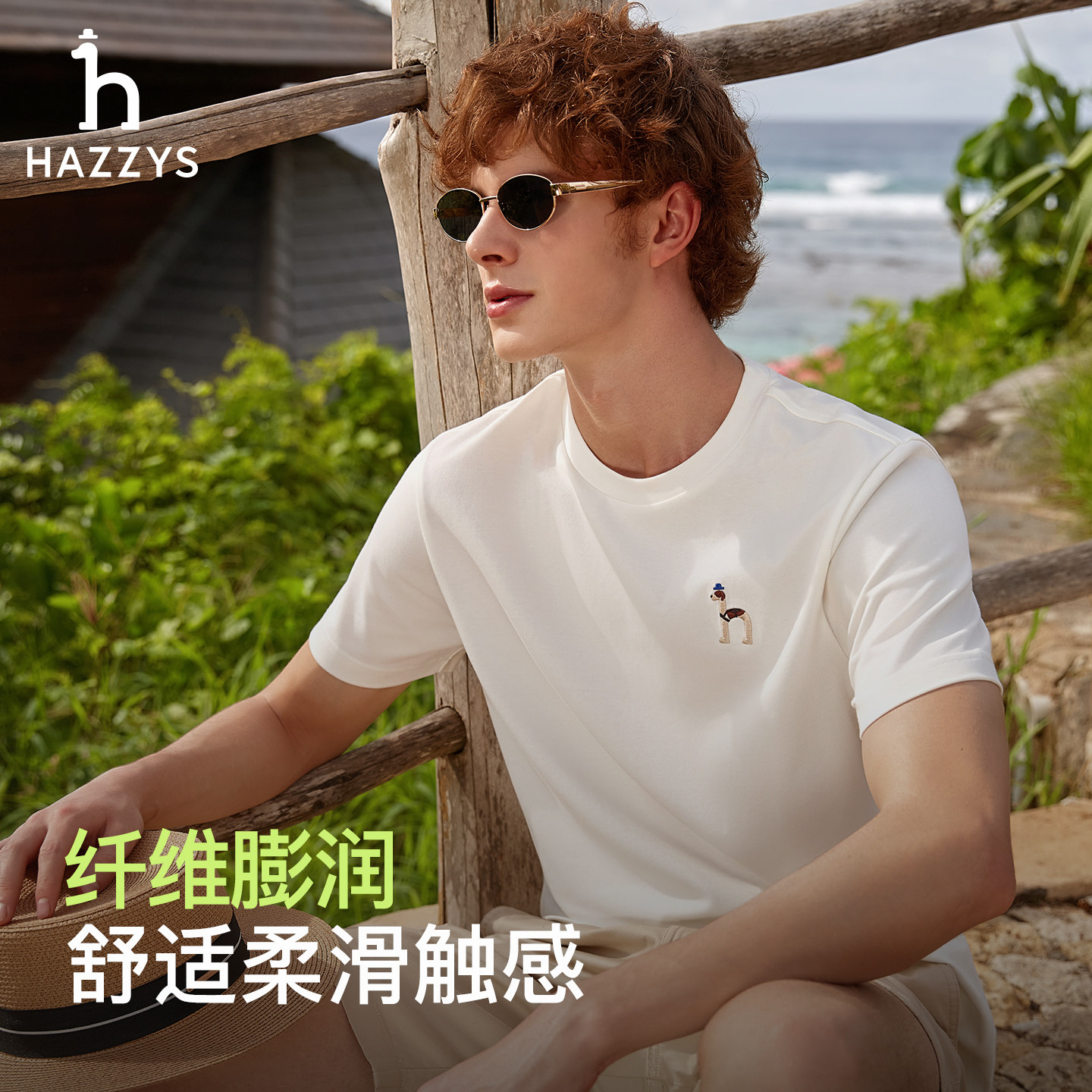 t恤男圆领纯色休闲打底上衣 Hazzys哈吉斯白色短袖 液氨易打理