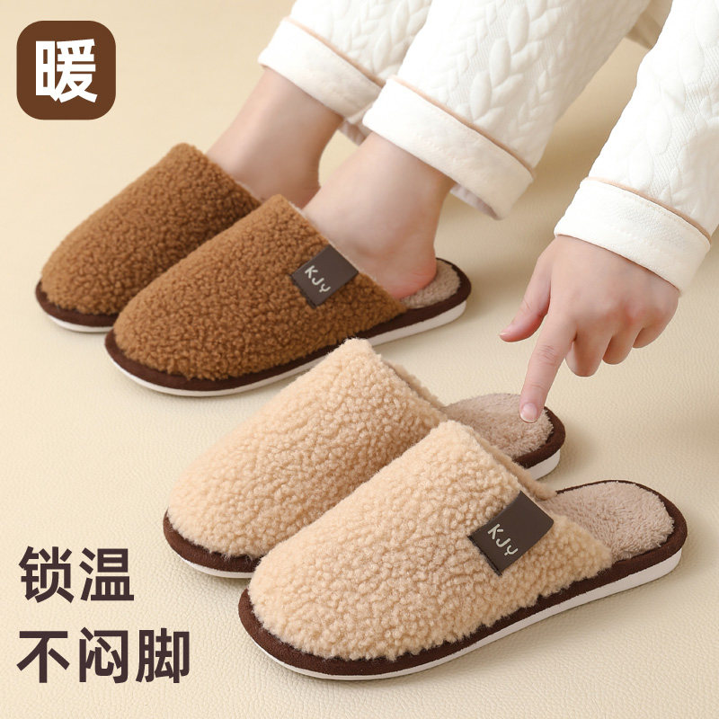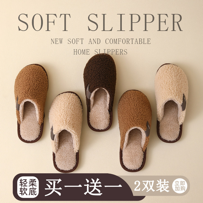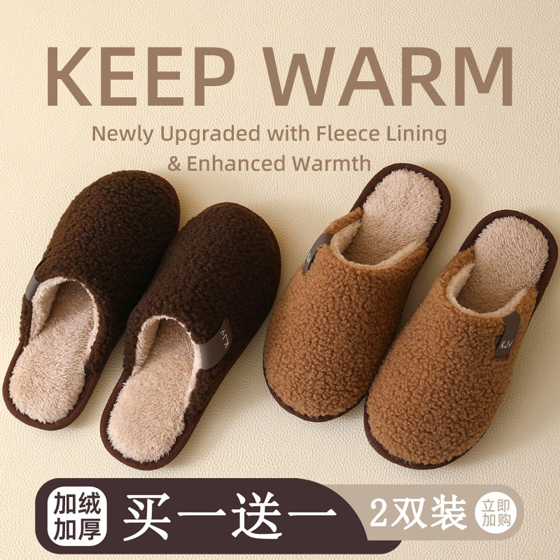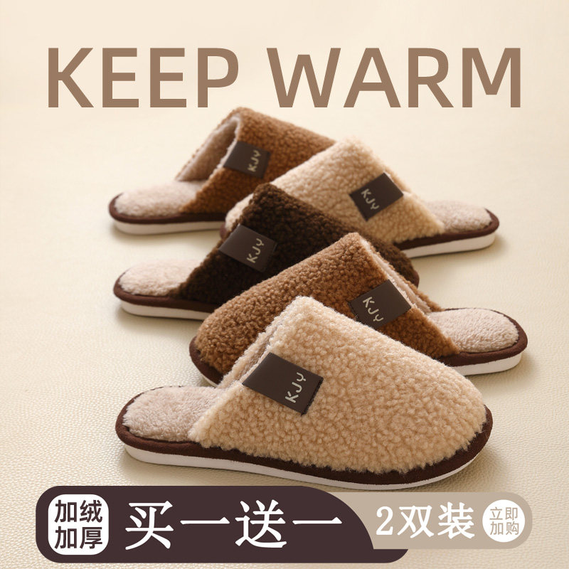 买一送一毛毛拖鞋 男女通用 情侣一对加绒加厚底防滑保暖居家棉拖鞋