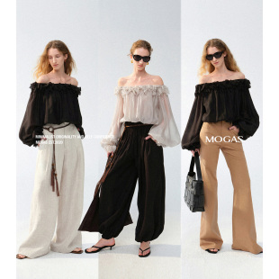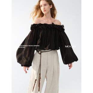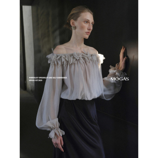 上衣衬衫 Mogas微透花瓣系列 重磅铜氨丝混纺慵懒浪漫一字肩灯笼袖