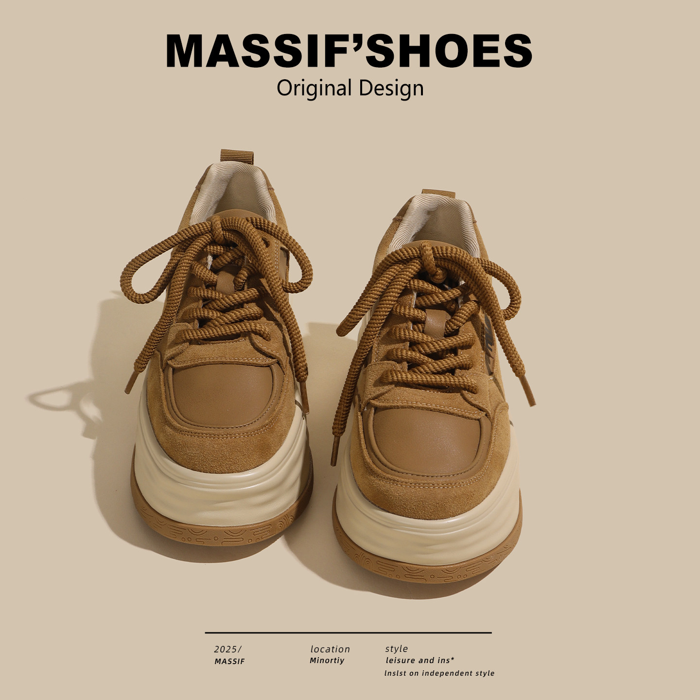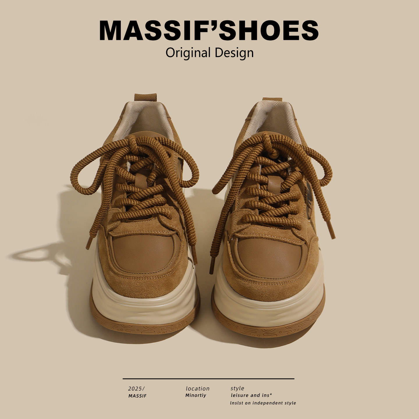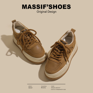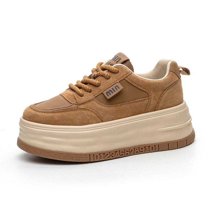 棕色小个子百搭复古松糕增高小白鞋 7cm真皮厚底板鞋 女2026春新款