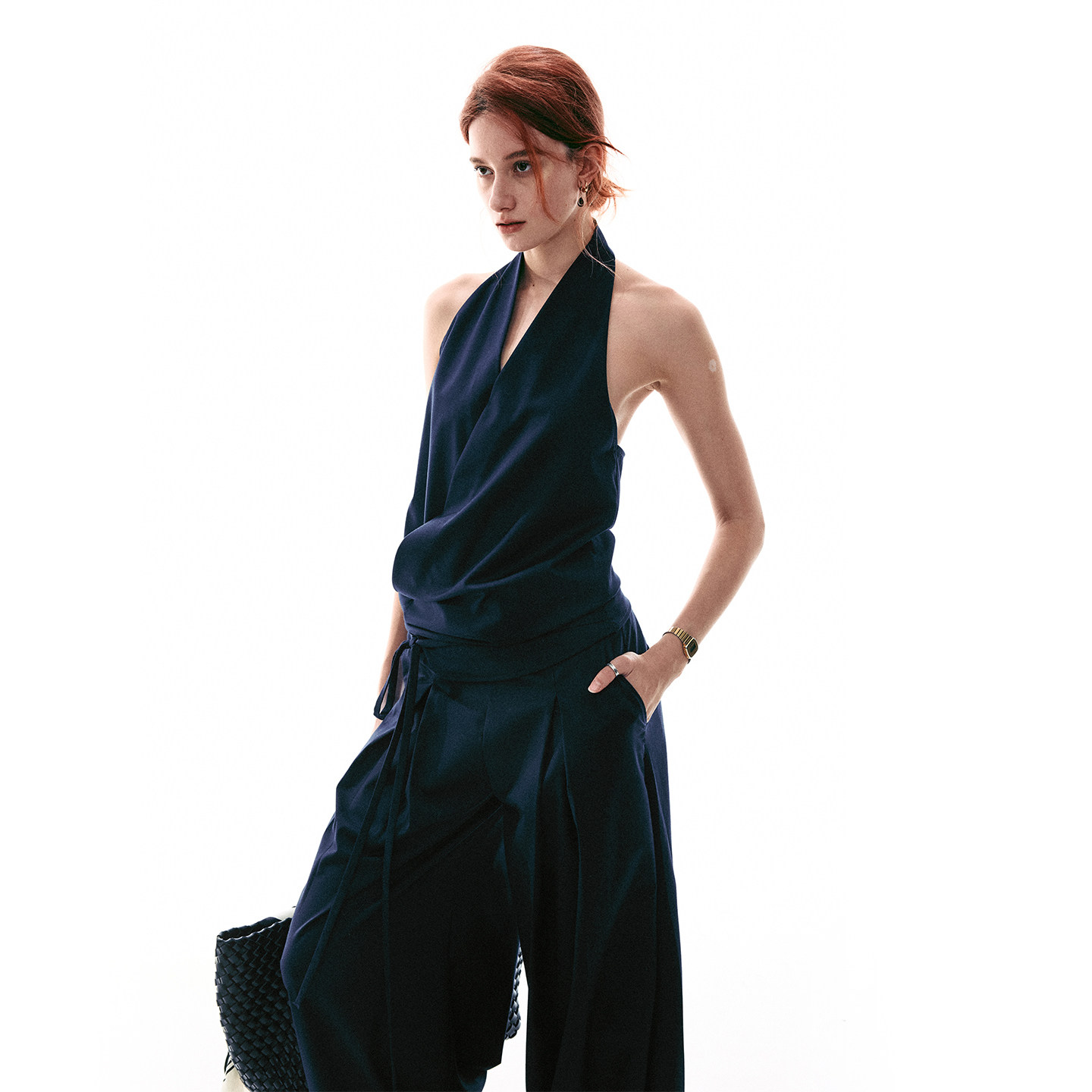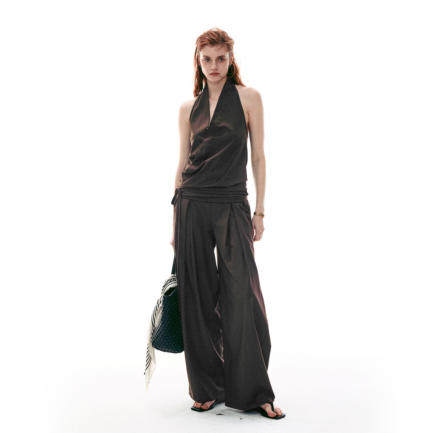 MOMENT 套装 26SS法式 上衣吊带背心风琴褶西裤 挂脖露背无袖 SINGLE