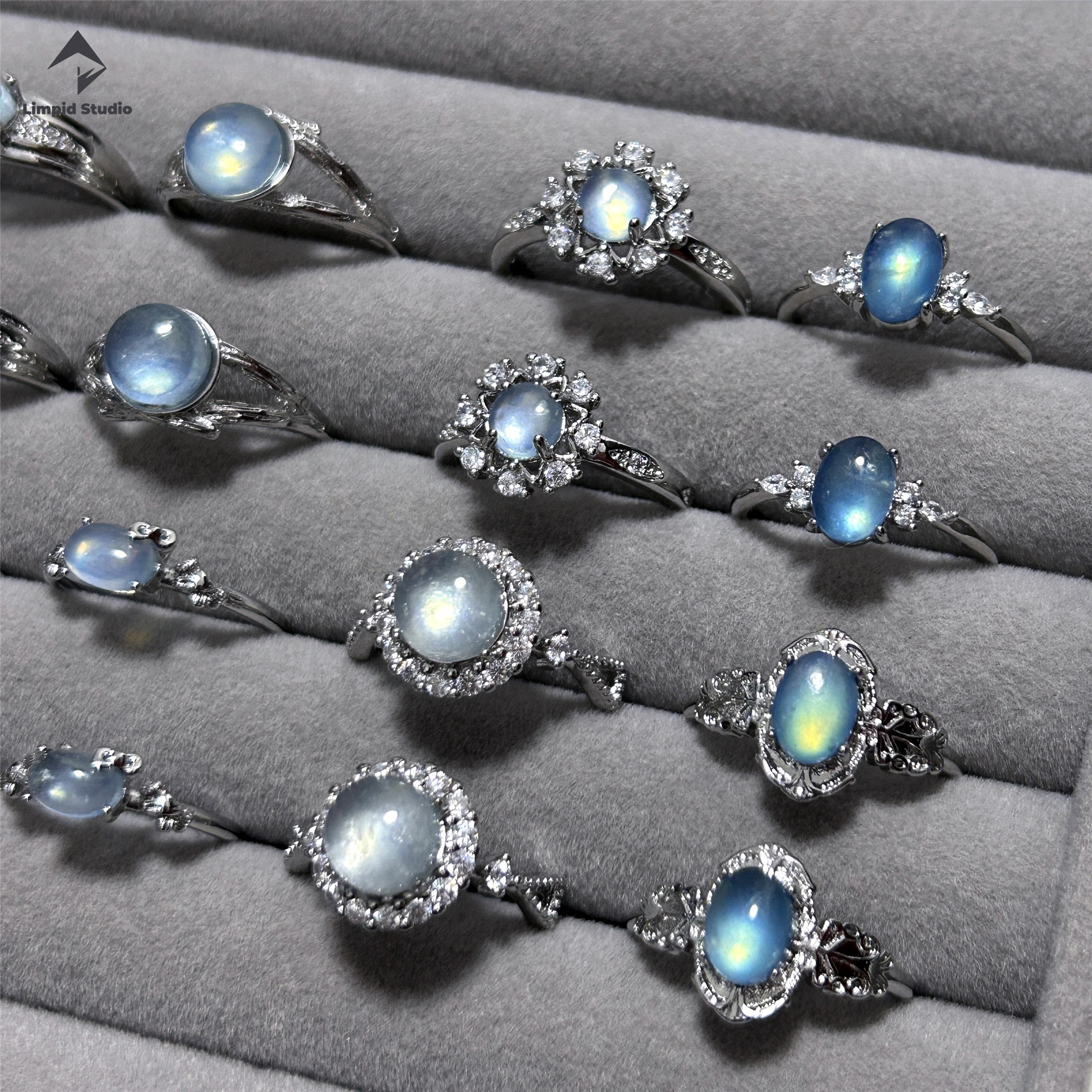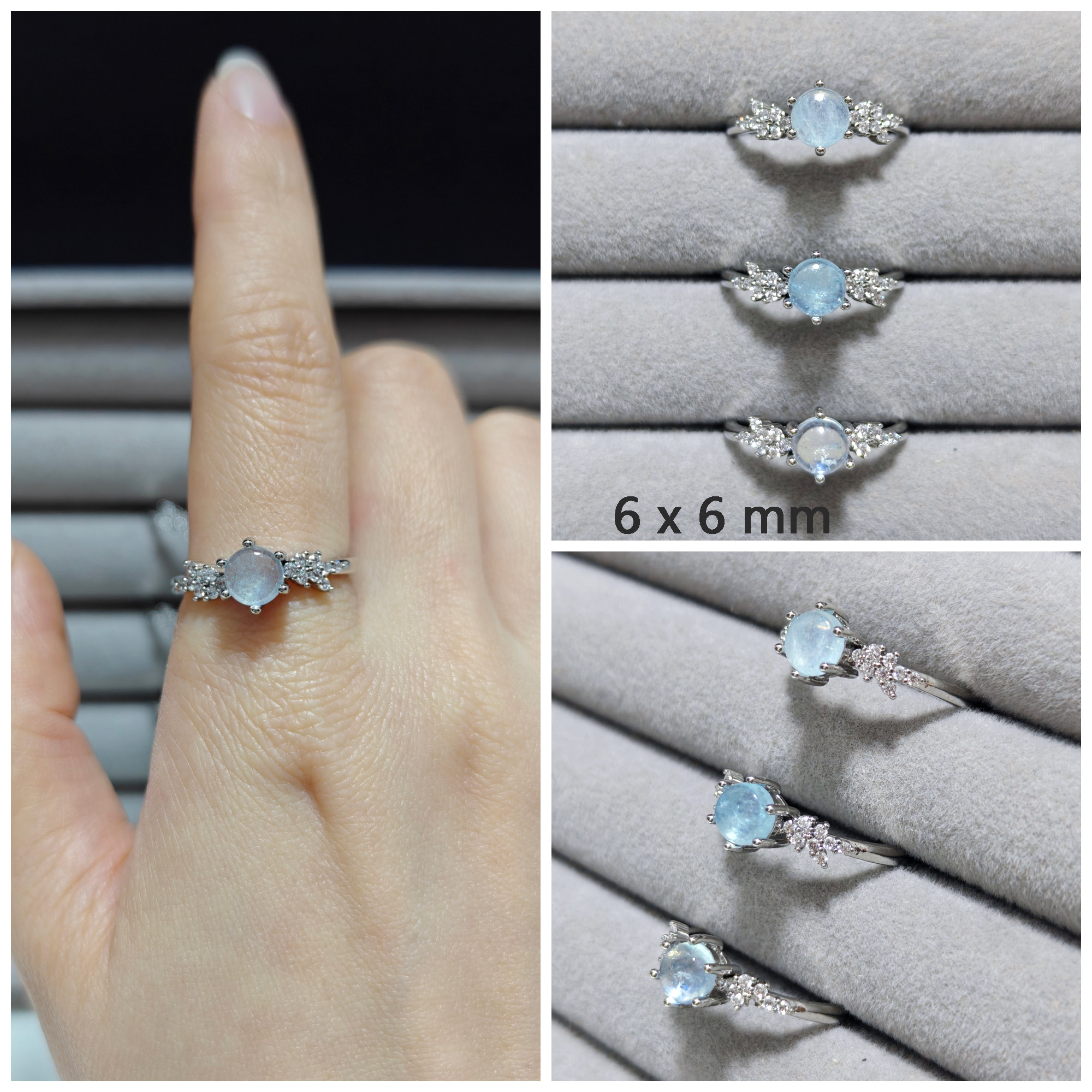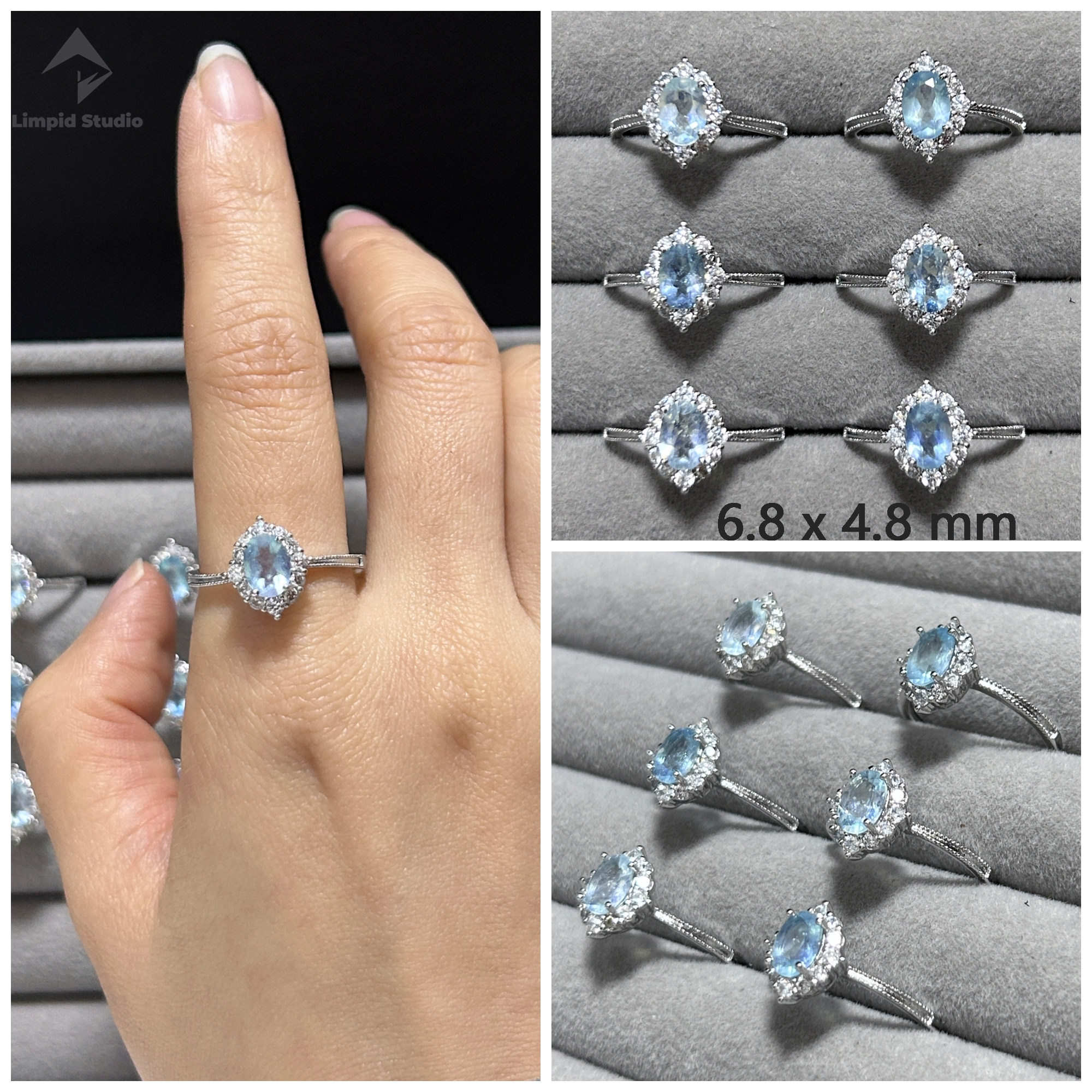 Limpid天然海蓝宝水晶戒指镶嵌开口可调节简约气质女高级礼物
