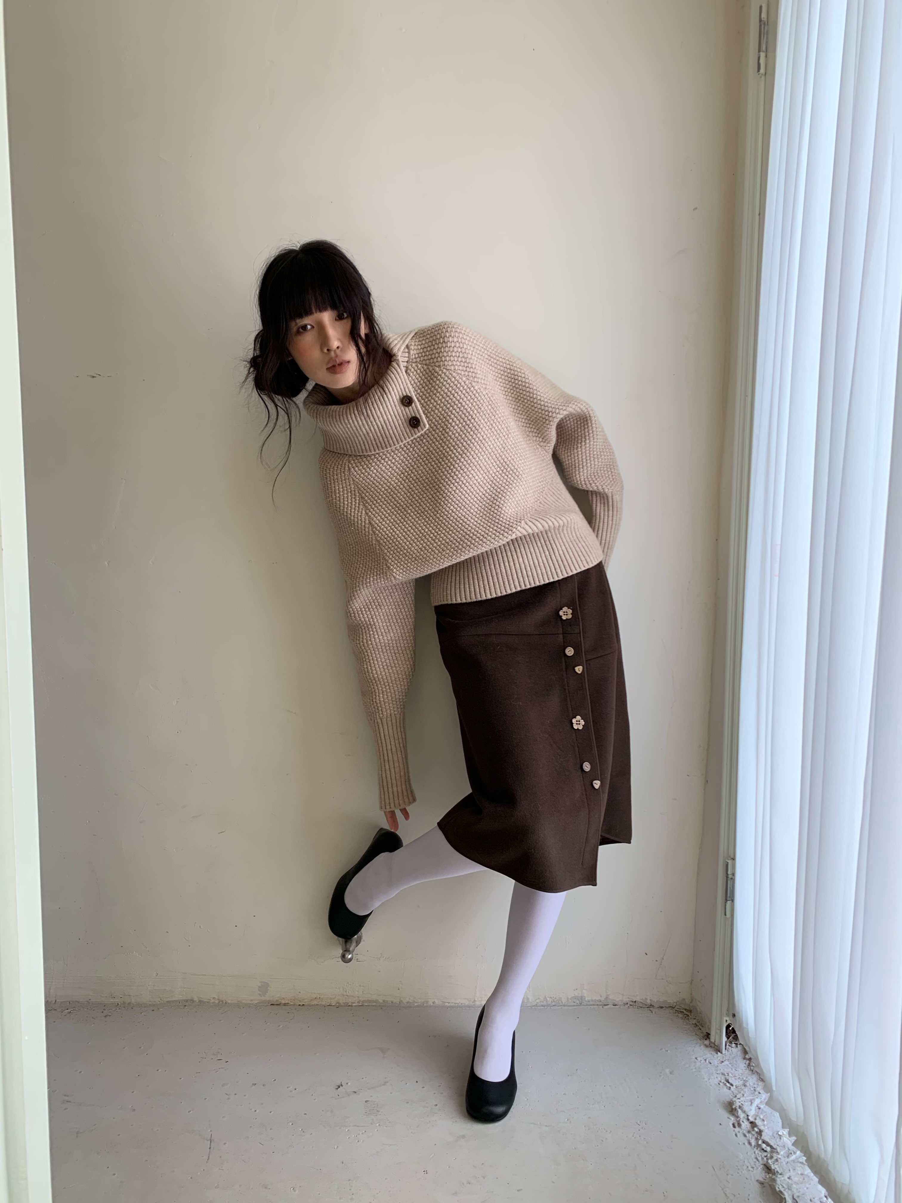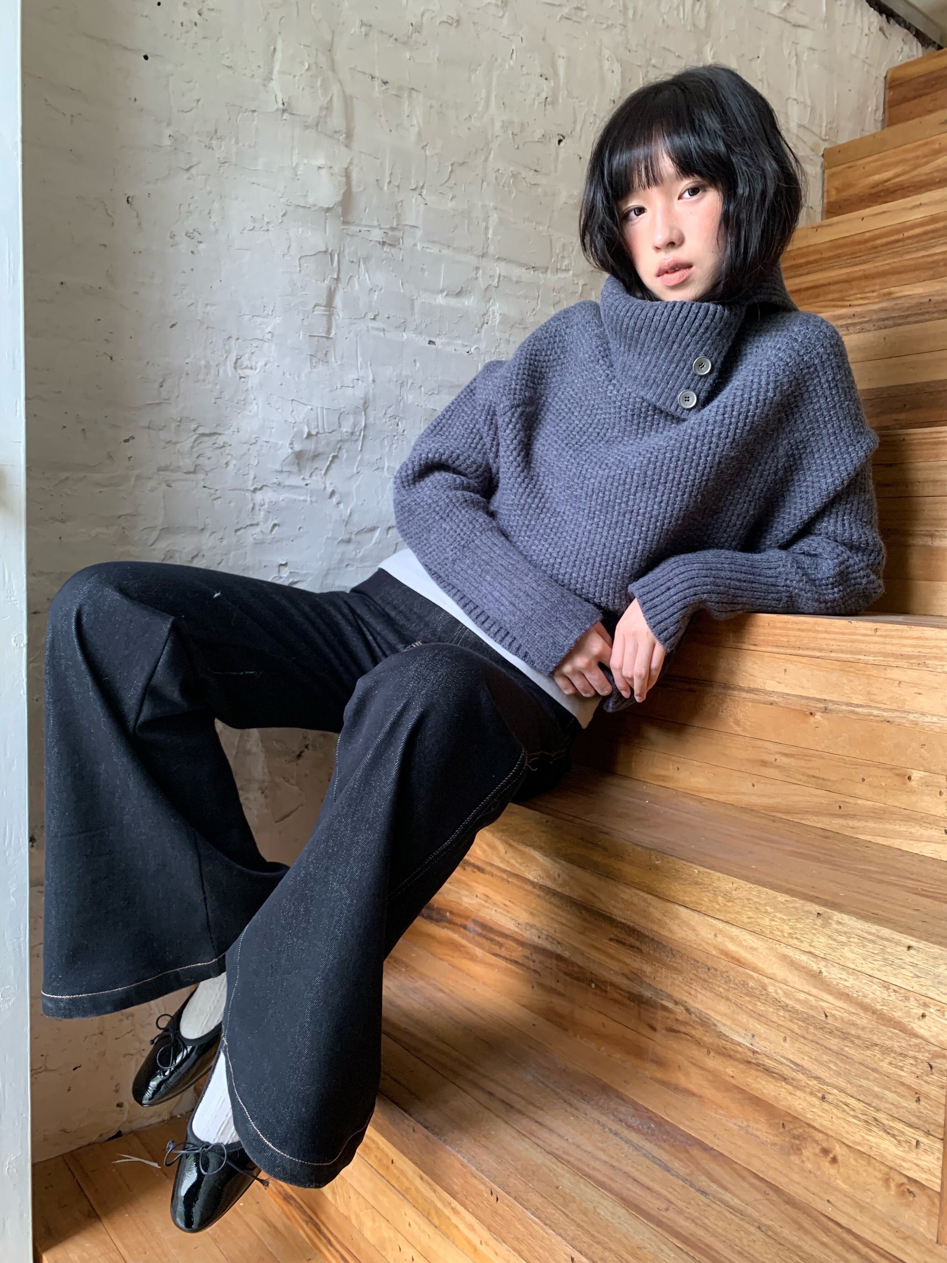 半高领设计感针织开衫 新款 洋气紫色立领方扣毛衣女2025年春季 韩版