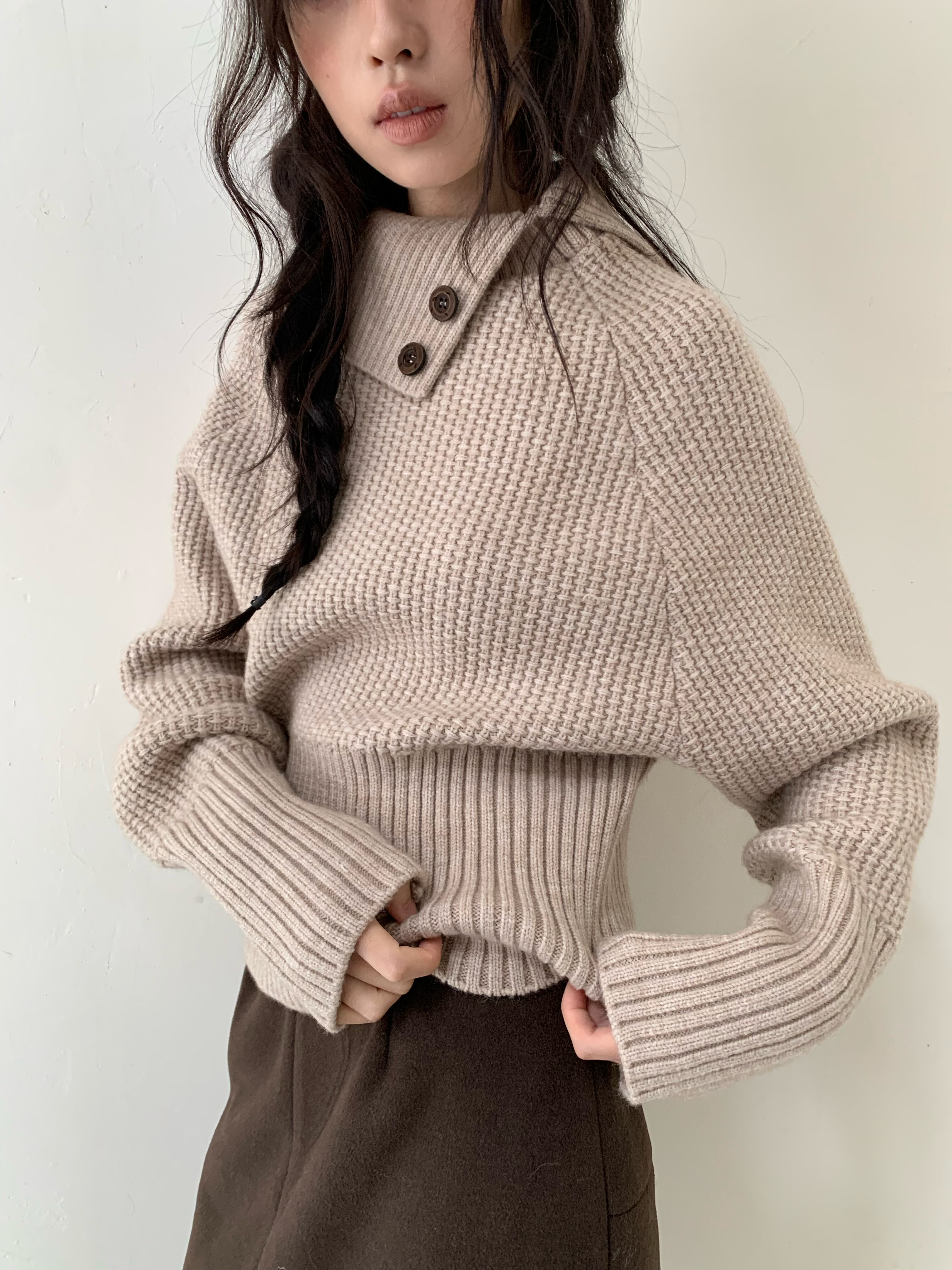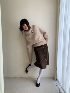针织打底衫 品牌高级感羊毛衫 女半高领宽松毛衣秋冬加厚羊绒长袖